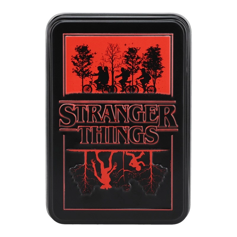 Fanoušci seriálu Stranger Things si vychutnají klasickou karetní zábavu s tématickým balením v plechové krabičce. Sada obsahuje 54 žolíkových karet ideálních na cestování, večírky i sběratelské vitríny.