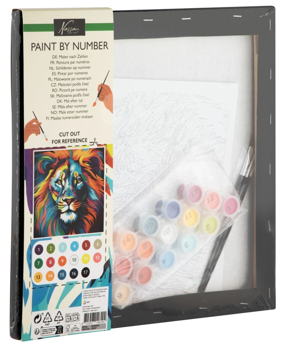Tato kreativní sada s motivem majestátního lva na černém plátně je ideální volbou pro děti i dospělé, kteří chtějí tvořit bez složité přípravy. Kontrastní černé pozadí zvýrazní barvy a výsledný obraz působí jako skutečné umělecké dílo. Stačí postupovat podle čísel a sledovat, jak se motiv krok za krokem proměňuje v hotový obraz.