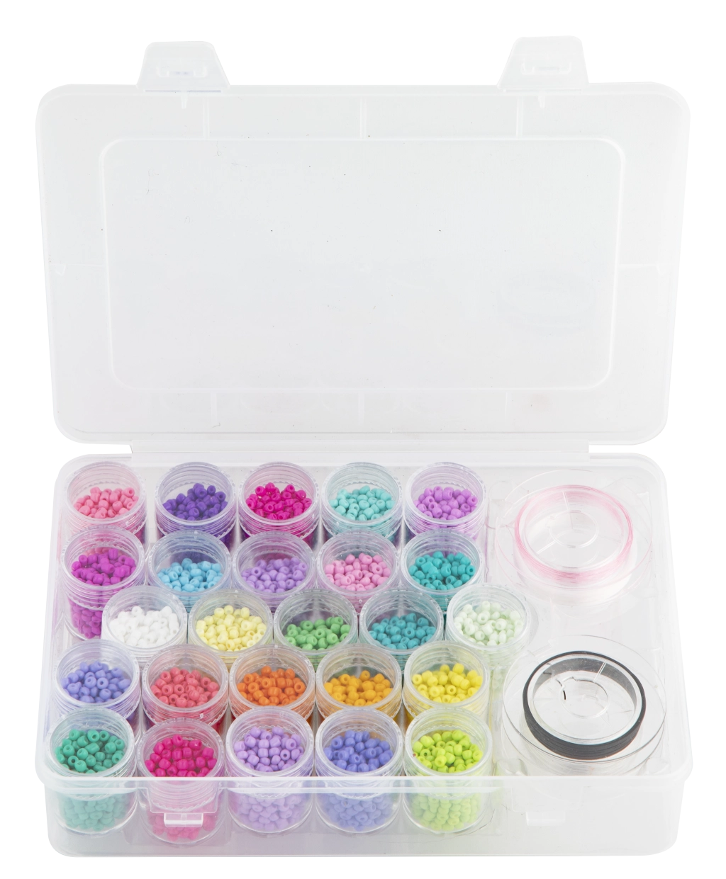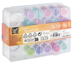 Tato velká sada skleněných korálků přináší bohatý výběr 25 barev pro vaše kreativní projekty. Díky průhlednému organizéru s přihrádkami máte všechny odstíny přehledně na dosah a můžete rychle kombinovat barvy pro jedinečné designy.