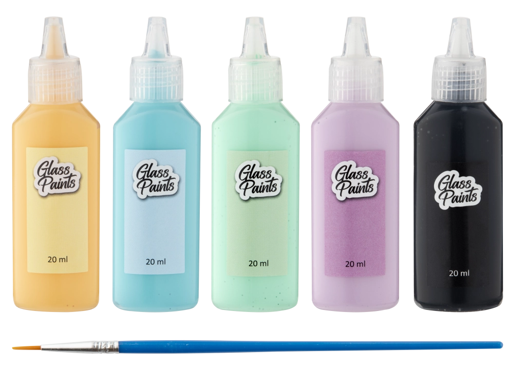 - Kompletní sada: 5× barva na sklo (20 ml) + štětec
