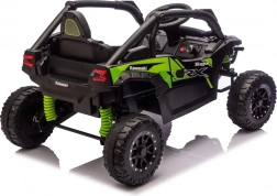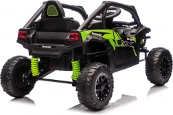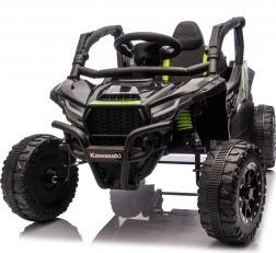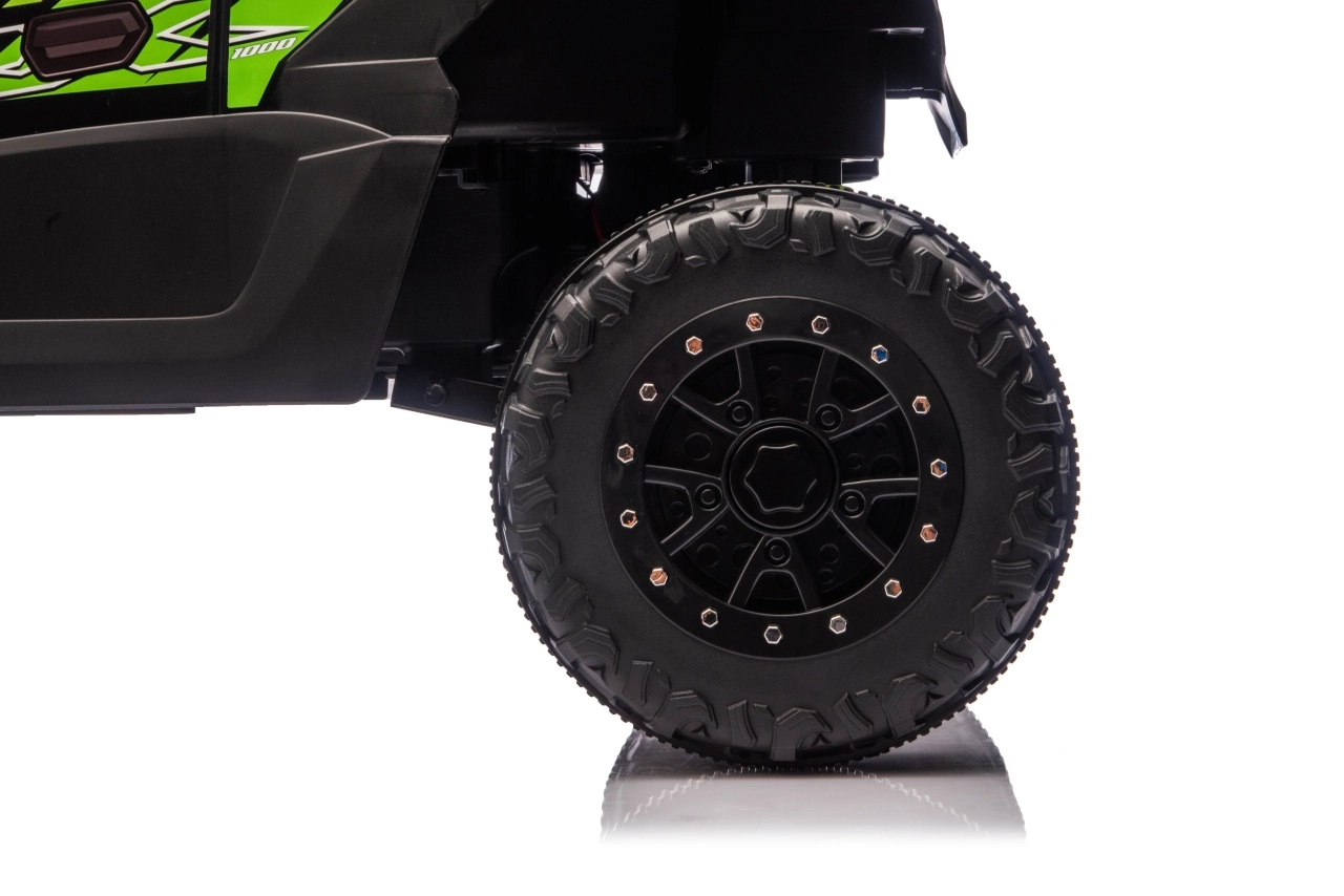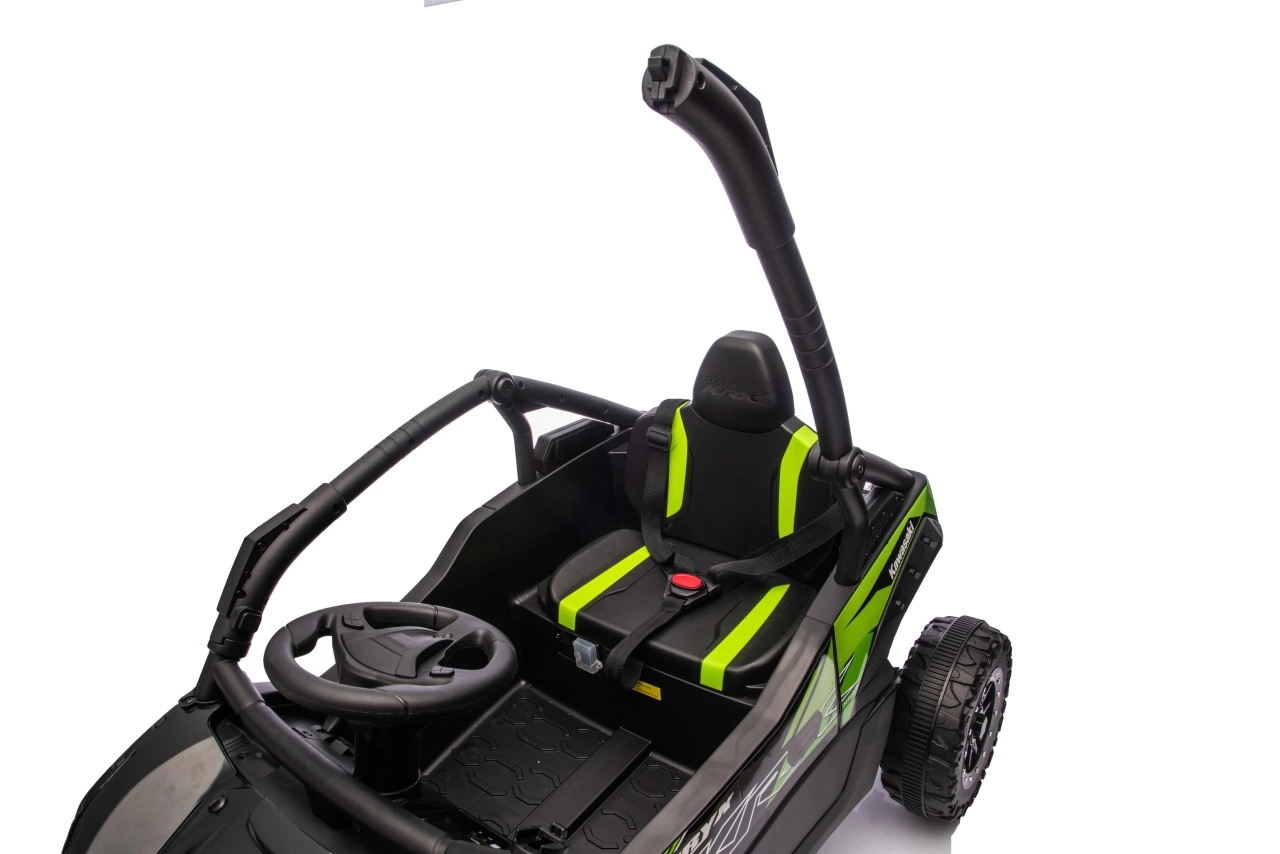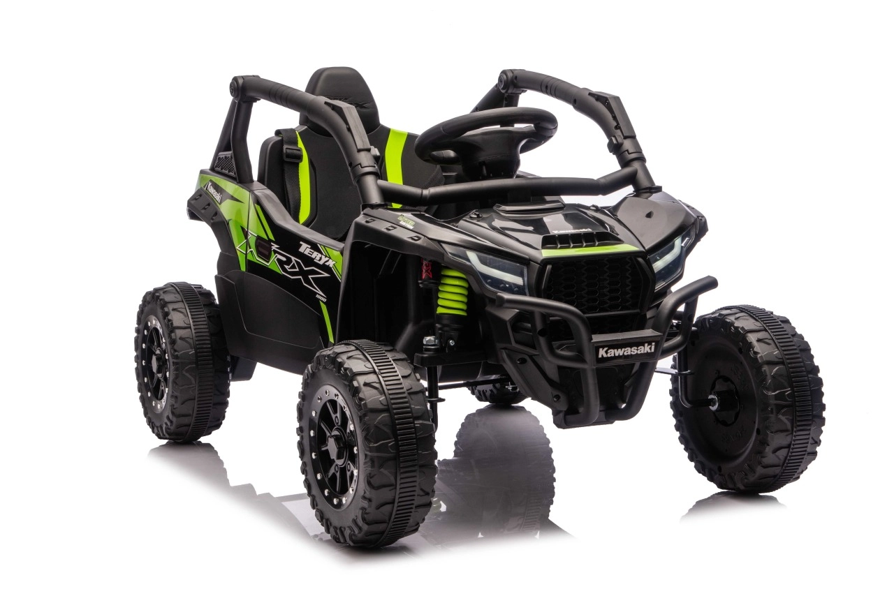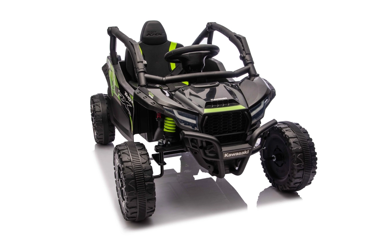 Stylový dětský buggy speciál inspirovaný off‑road legendou KAWASAKI nabízí skutečně terénní zážitky. Díky velkým měkkým EVA kolům (23 × 9 cm), vysoké světlé výšce 15 cm a zadním tlumičům zvládá nerovnosti s jistotou. Elektronika s plynulým rozjezdem, dvě rychlosti vpřed a zpátečka pomáhají dětem jezdit pohodlně a bezpečně.
