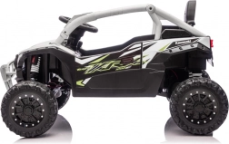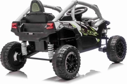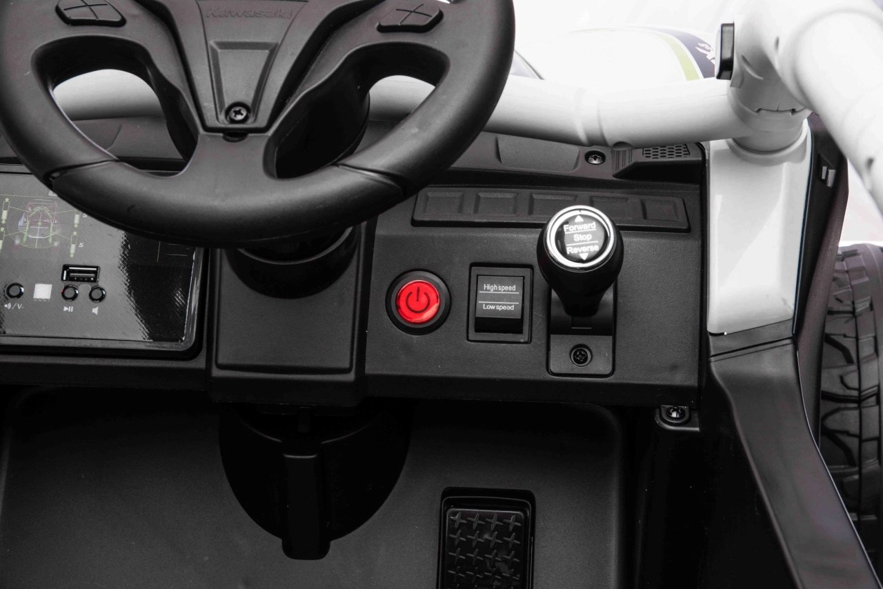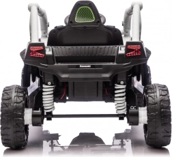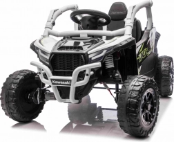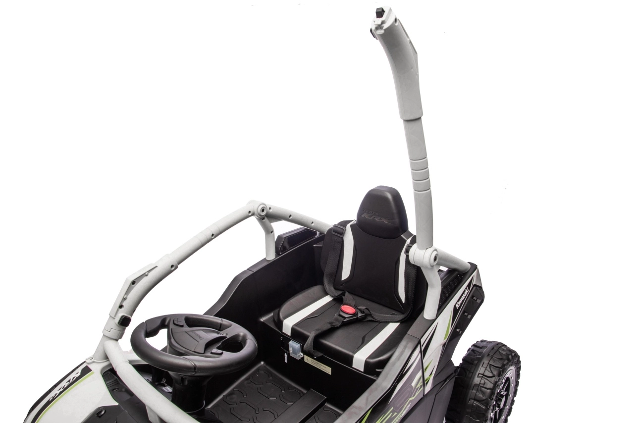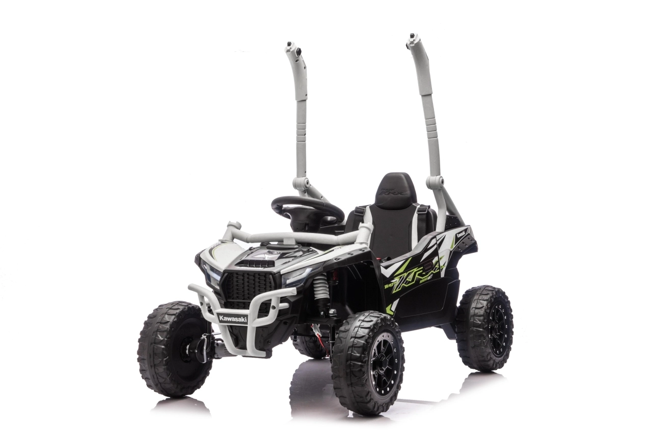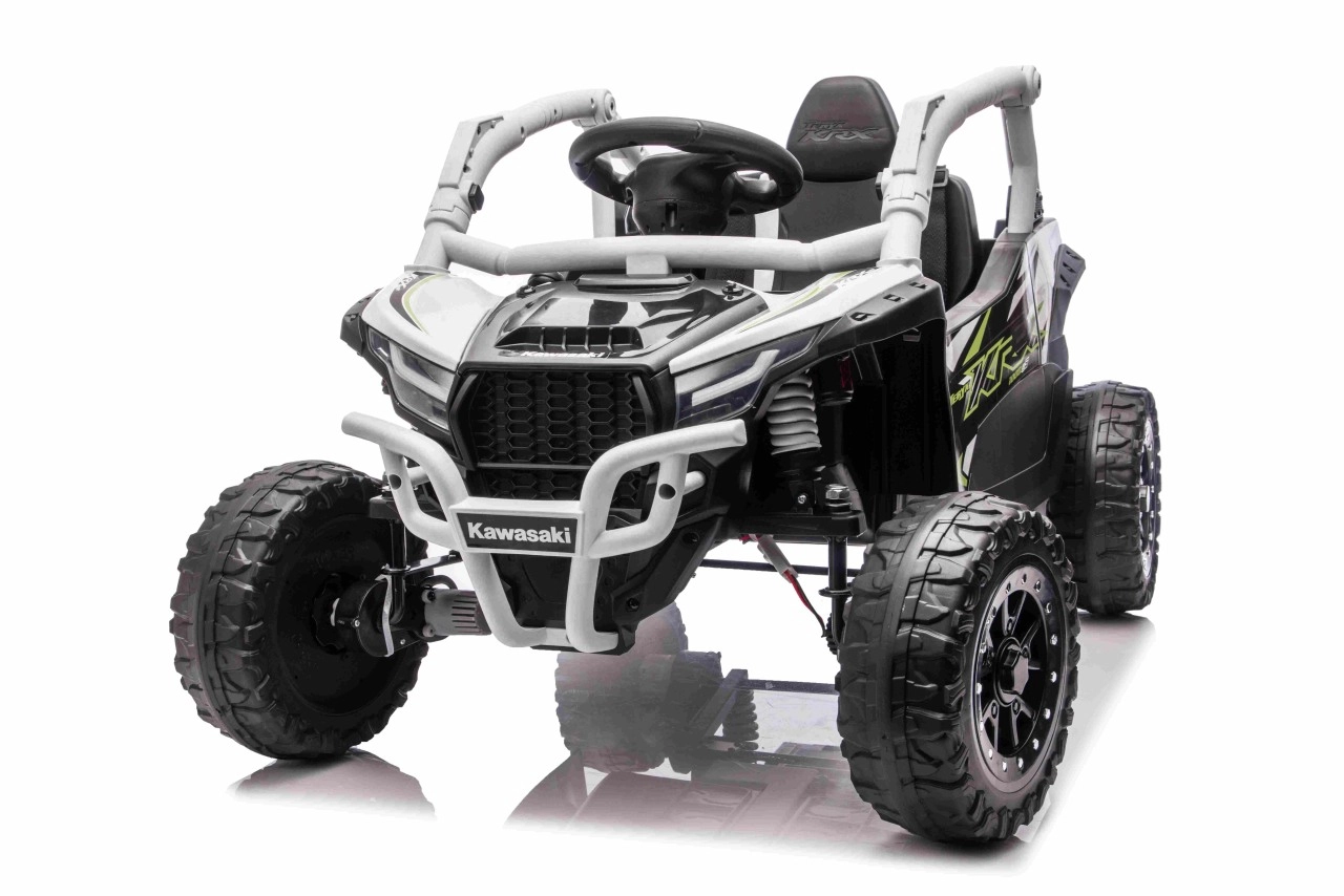 Šedé dětské vozítko KAWASAKI TERYX KRX1000 kombinuje atraktivní off-road design s bezpečnou a pohodlnou jízdou. Pohon zajišťuje 24V5Ah baterie a čtveřice motorů pro jistý záběr v terénu, zatímco měkká kola EVA s výrazným dezénem poskytují skvělou trakci a tichý chod. Zadní pružinové tlumiče pak zvyšují komfort na nerovnostech.