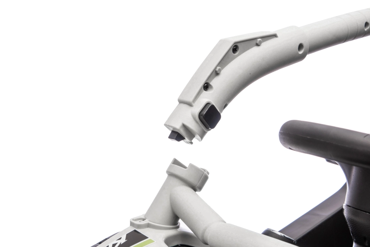 - Praktičnost: start na tlačítko, nízká hlučnost kol EVA, kvalitní plastové díly a snadná údržba.