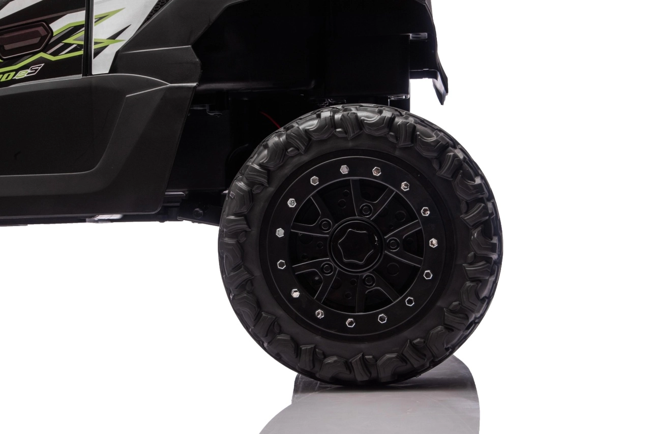Robustní dětské elektrické auto ve stylu UTV přináší dobrodružství do každé zahrady. Díky silnému 24V akumulátoru, 4 motorům (2×20 W vpředu a 2×45 W vzadu) a měkkým EVA kolům zvládne i nerovný terén. Nechybí LED světla, bezpečnostní pás, plynulý rozjezd a dálkové ovládání 2,4 GHz s tlačítkem Stop pro rodiče.
