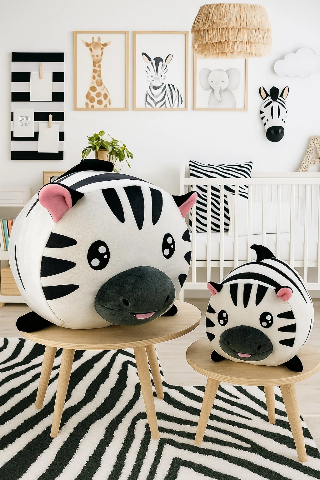 Roztomilý set dvou plyšových zeber – maminka a mládě – z extra měkkého materiálu pro hru, mazlení i dekoraci. Menší zebra je ideální jako první mazlíček, větší poslouží jako pohodlný polštářek na cesty či do pokoje. Díky kvalitnímu zpracování, bezpečnému vyšívanému obličeji a možnosti praní v pračce nabízí tento set komfort, bezpečí a dlouhou životnost.