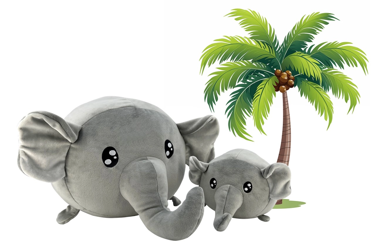 Roztomilá sada dvou plyšových slonů – maminka a mládě – přináší měkké objetí, bezpečné vyšívané detaily a komfort pro děti všech věkových kategorií. Menší sloník je ideální jako mazlíček pro miminka, větší poslouží jako pohodlný polštářek na cesty i do dětského pokojíčku. Snadná údržba praním na 30 °C.