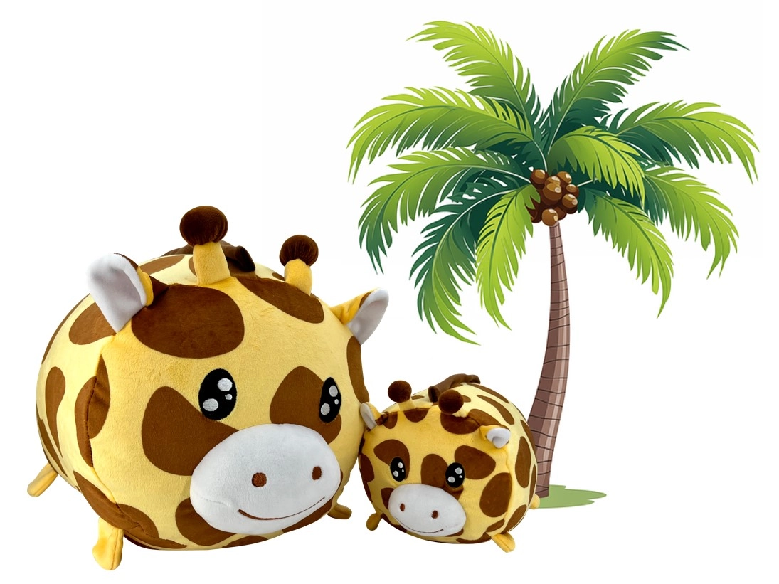 Roztomilý set dvou plyšových žiraf – maminka a mládě – z mimořádně měkké a hebké plyše. Větší žirafa poslouží jako mazlivý polštářek na cesty, menší je ideální pro nejmenší děti jako první mazlíček. Bezpečné provedení bez tvrdých částí, pratelné na 30 °C a vhodné od narození.