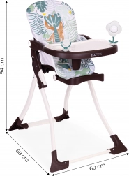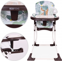 ECOTOYS jídelní židlička usnadní společné stolování a udrží vaše dítě v pohodlí i bezpečí. Široký pultík nabízí dostatek prostoru pro talířek, hrneček i hraní – součástí jsou otáčecí hračka a chrastítko, které zabaví a rozvíjejí smysly. Skládací konstrukce šetří místo v malých interiérech a usnadňuje transport.