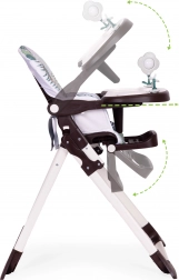 Široký, nastavitelný a dvouvrstvý pult s vyjímatelnou horní vložkou se snadno čistí. Integrované hračky zabaví dítě při čekání na jídlo a podporují rozvoj motoriky.