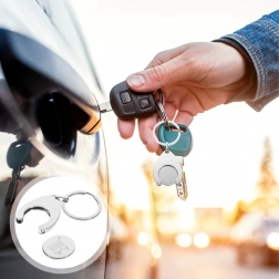 Odnímatelný žeton pro nákupní vozíky je pevně usazen v držáku klíčenky – už žádné hledání drobných ani žetonů.