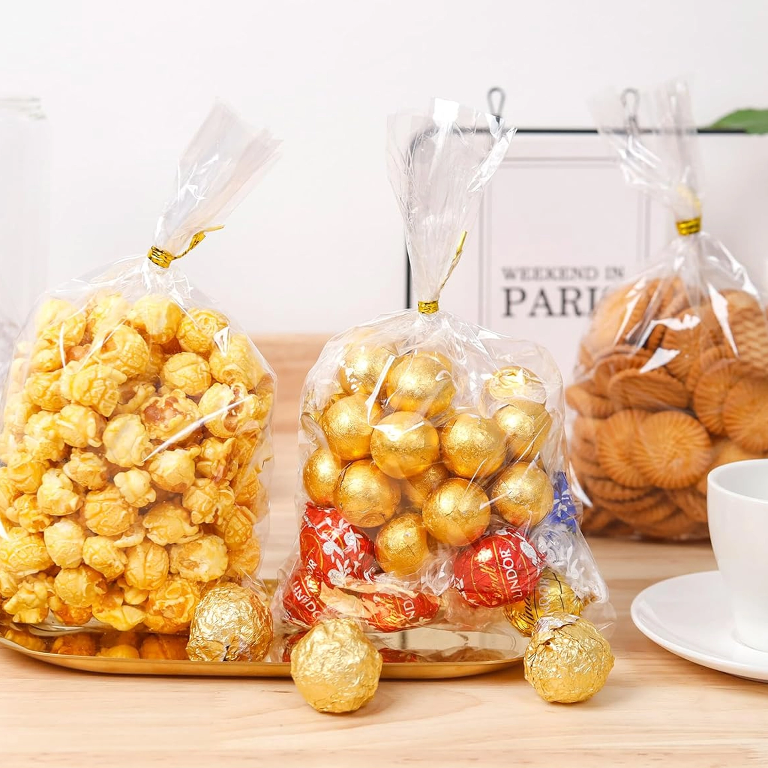 Sáčky jsou vhodné pro styk s potravinami, skvělé pro popcorn, sušenky či čokolády i pro drobné dárky a firemní balíčky.
