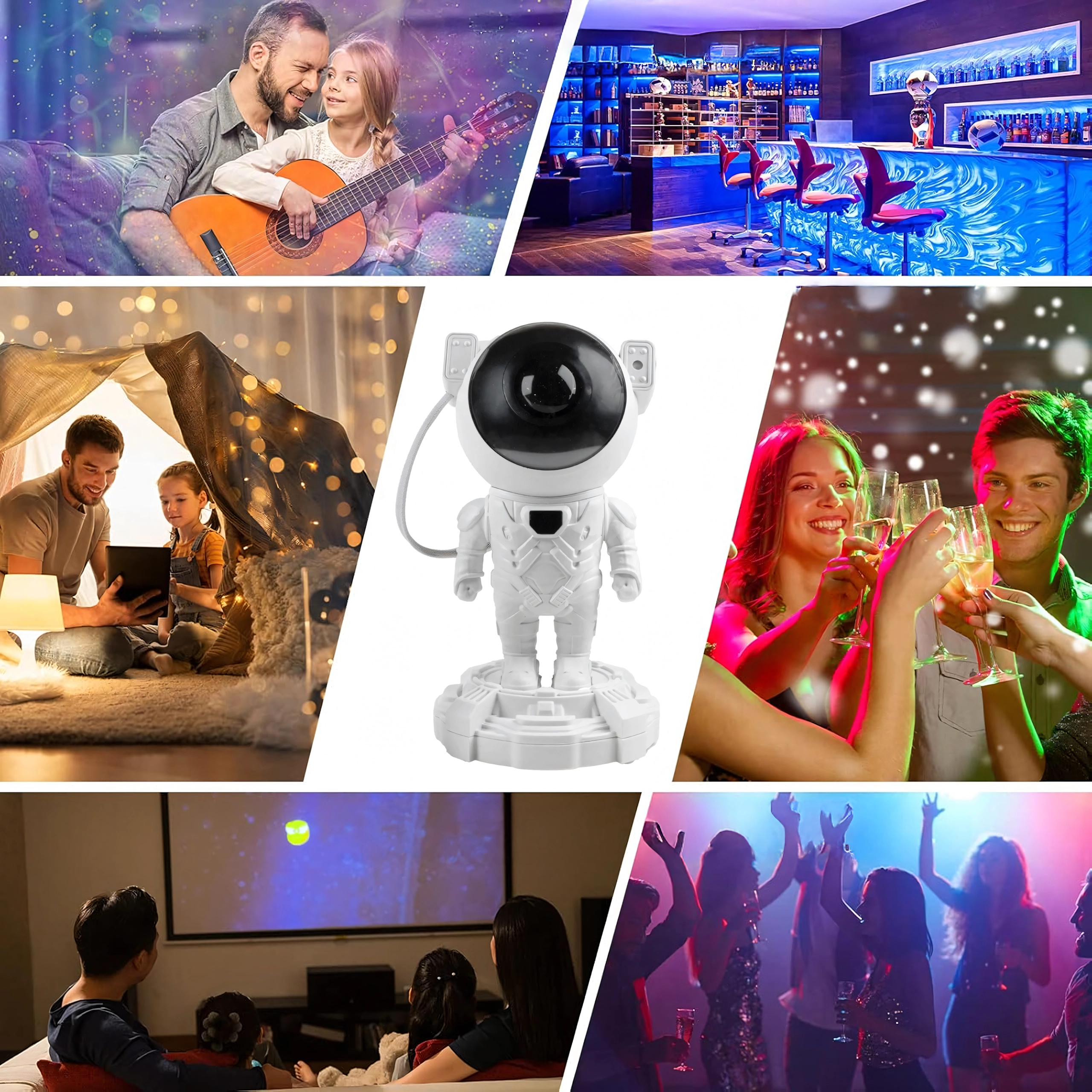 Astronaut projektor hvězd promění každý dětský pokoj v kouzelnou galaxii. Nabízí 8 režimů projekce, plynulou regulaci jasu, efekty mlhovin a hvězd a otáčecí hlavu pro přesné nasměrování světla. Dálkový ovladač usnadňuje ovládání a certifikace CE a RoHS zajišťují bezpečné používání.