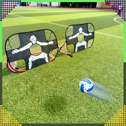 Zaměřte střelbu na vyřezané otvory s grafikou brankáře a zlepšujte umístění i techniku zakončení – motivační a hravý způsob, jak rychle růst.