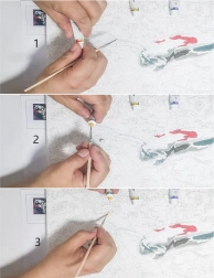 - Sady štětců a závěsných háčků pro snadné vystavení hotového obrazu.