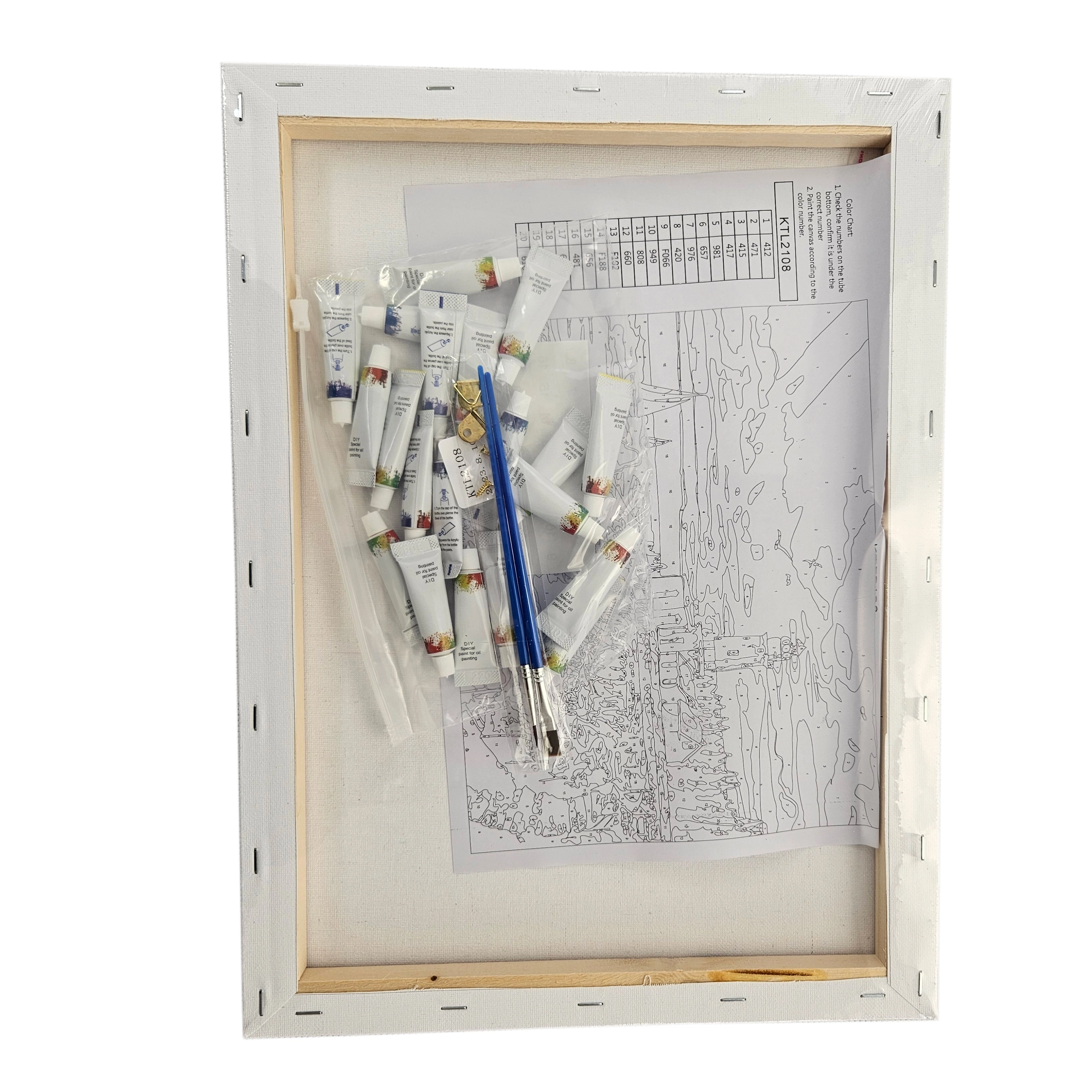 Plátno je již napnuté na dřevěném blejtramu, takže můžete malovat ihned a hotový obraz po dokončení rovnou zavěsit na zeď.