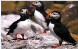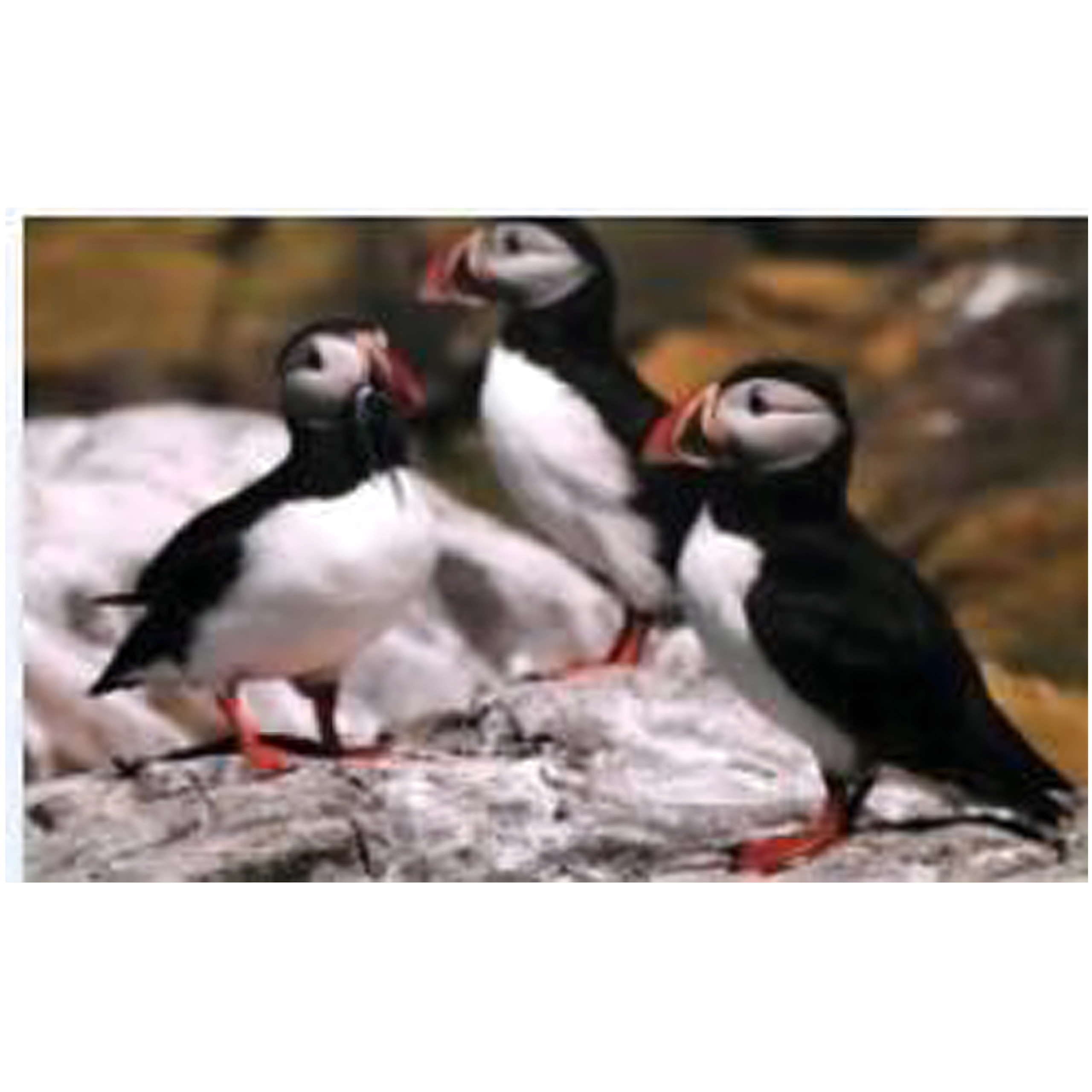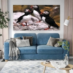 Fotograficky laděný vzor tří maskoněrů na skalách dodá interiéru barvu, kontrast a přírodní atmosféru. Perfektní jako dominantní nástěnná dekorace.