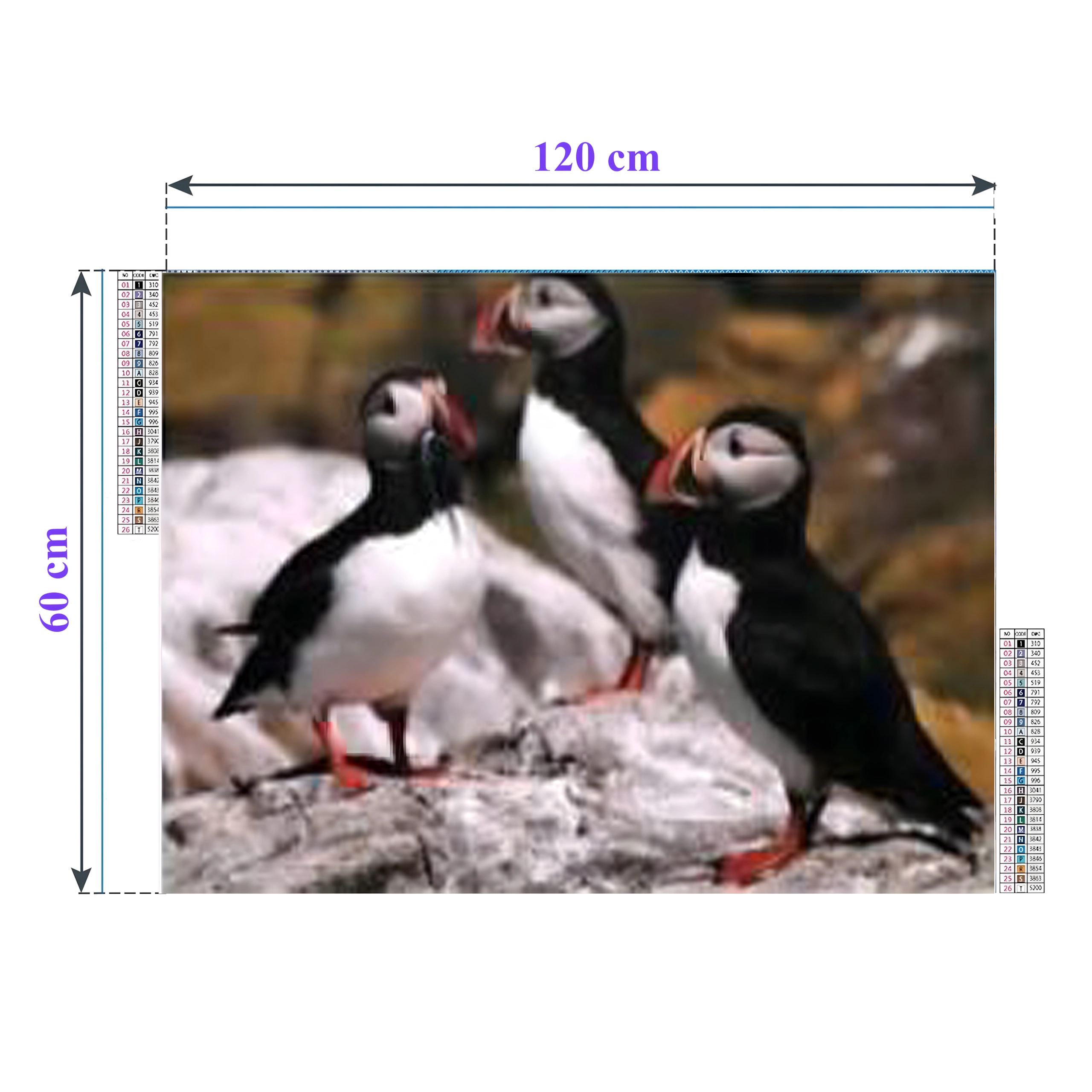 Tato velká sada diamantového malování přináší uklidňující tvoření a působivý výsledek. Motiv tří maskoněrů vynikne ve formátu 120 × 60 cm a rozzáří obývací pokoj, ložnici i pracovnu. Díky přehledné legendě a kódovanému plátnu je práce snadná i pro začátečníky.