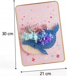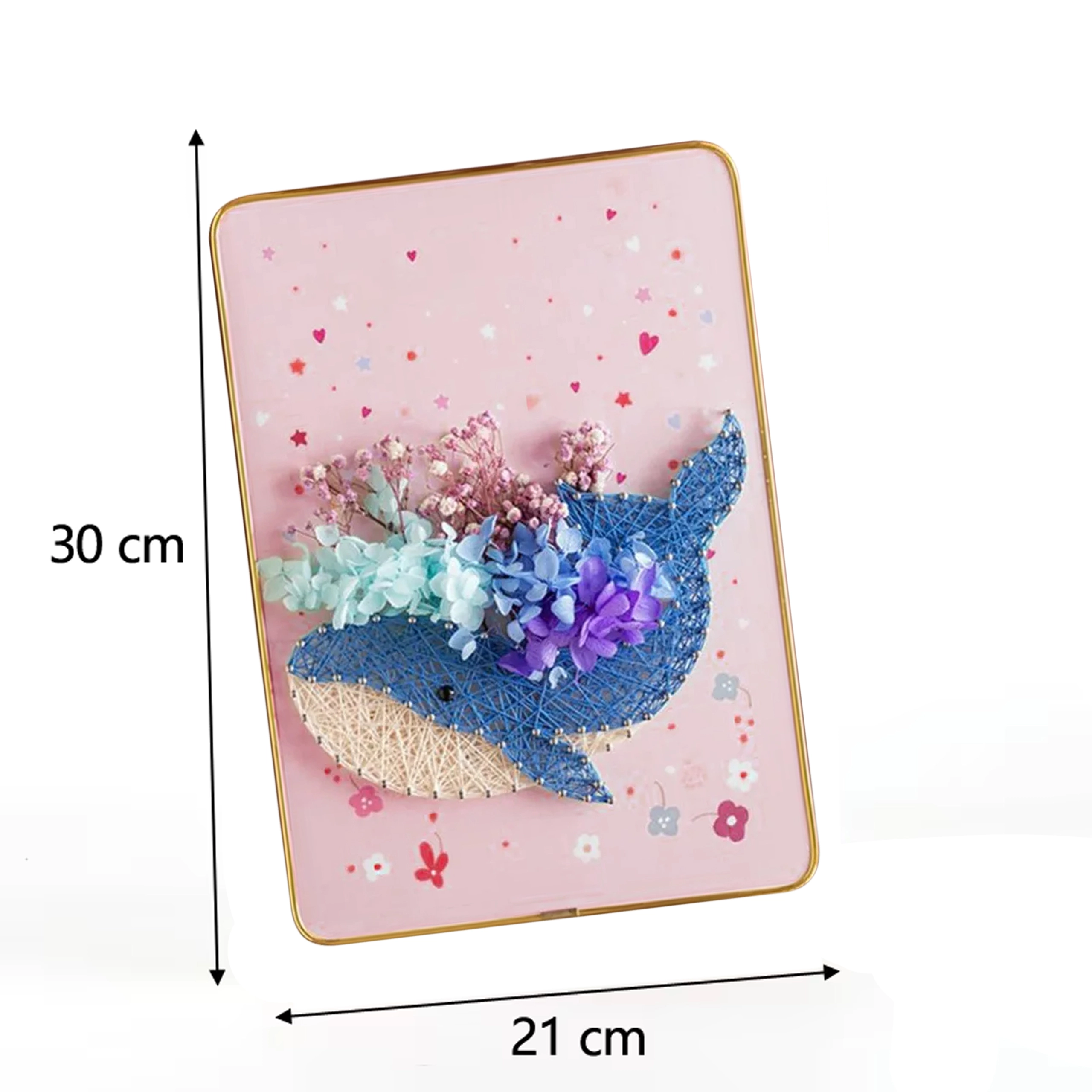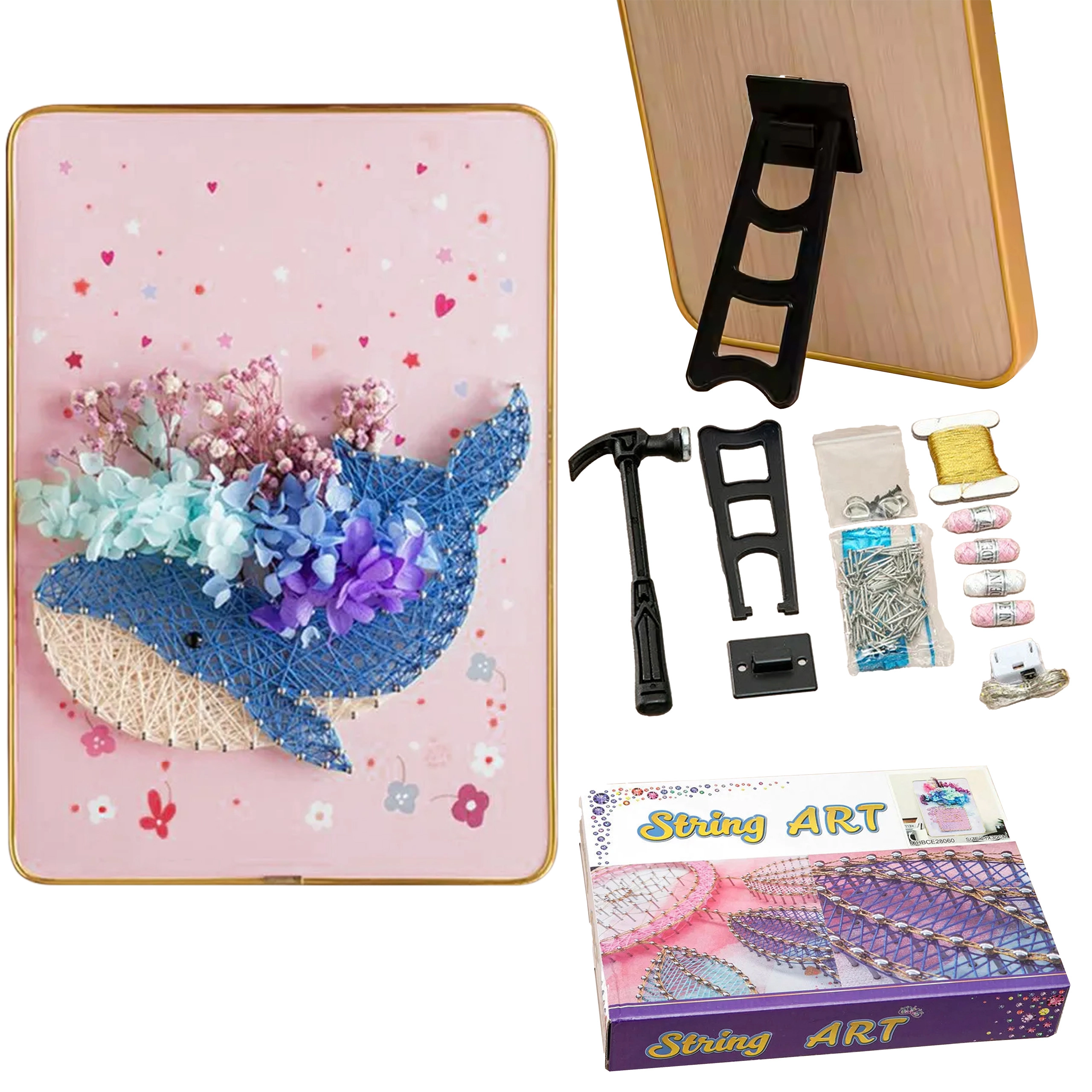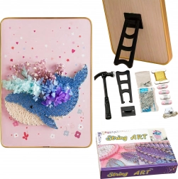 Objevte zábavnou „sztuku nití“ pro děti i dospělé. Tato kreativní sada string art obsahuje vše potřebné k vytvoření dekorativního obrázku v rámu 21 × 30 cm s motivem delfína. Díky integrovaným LED světýlkům získá vaše dílo kouzelnou atmosféru. Skvělý dárek, který rozvíjí kreativitu, představivost a jemnou motoriku.