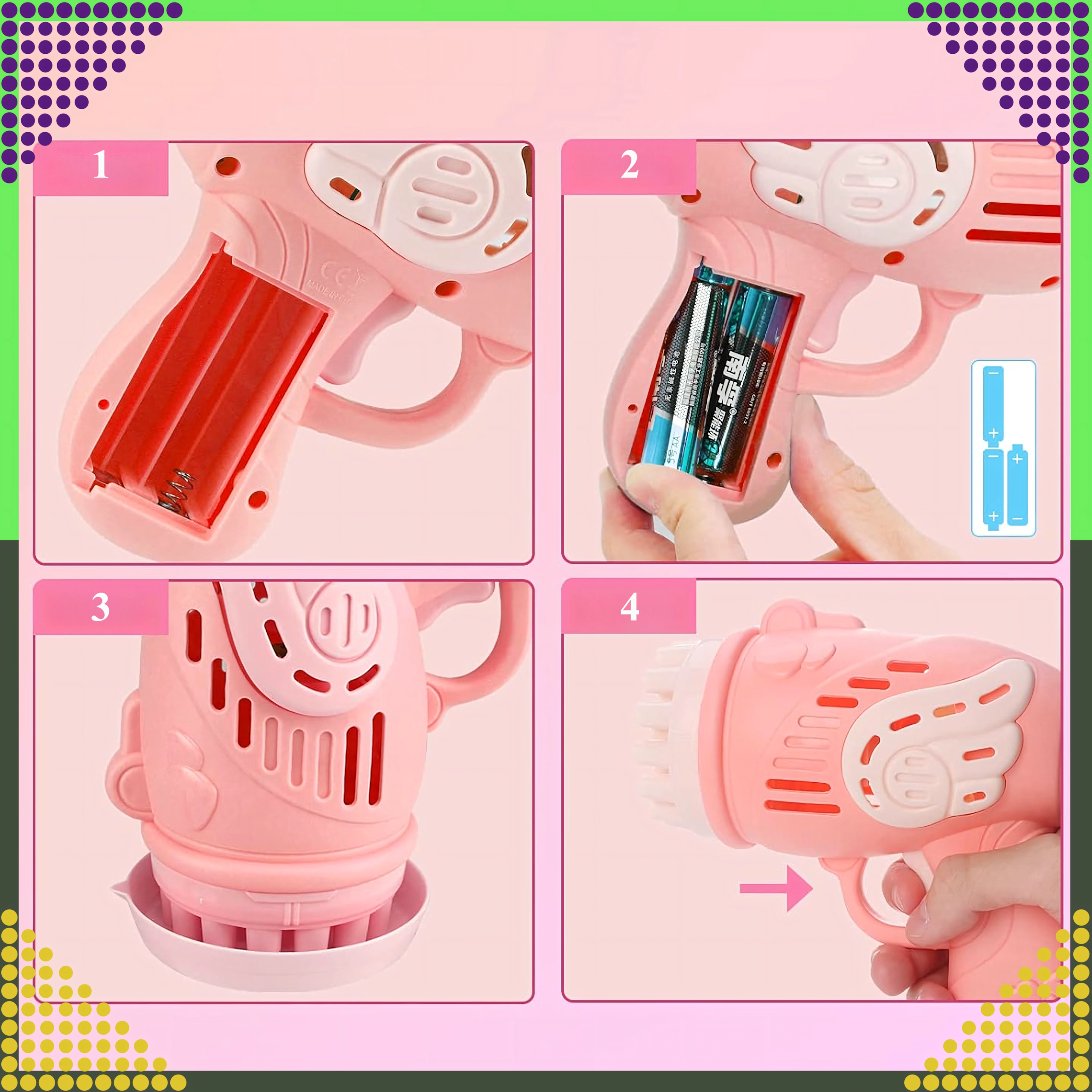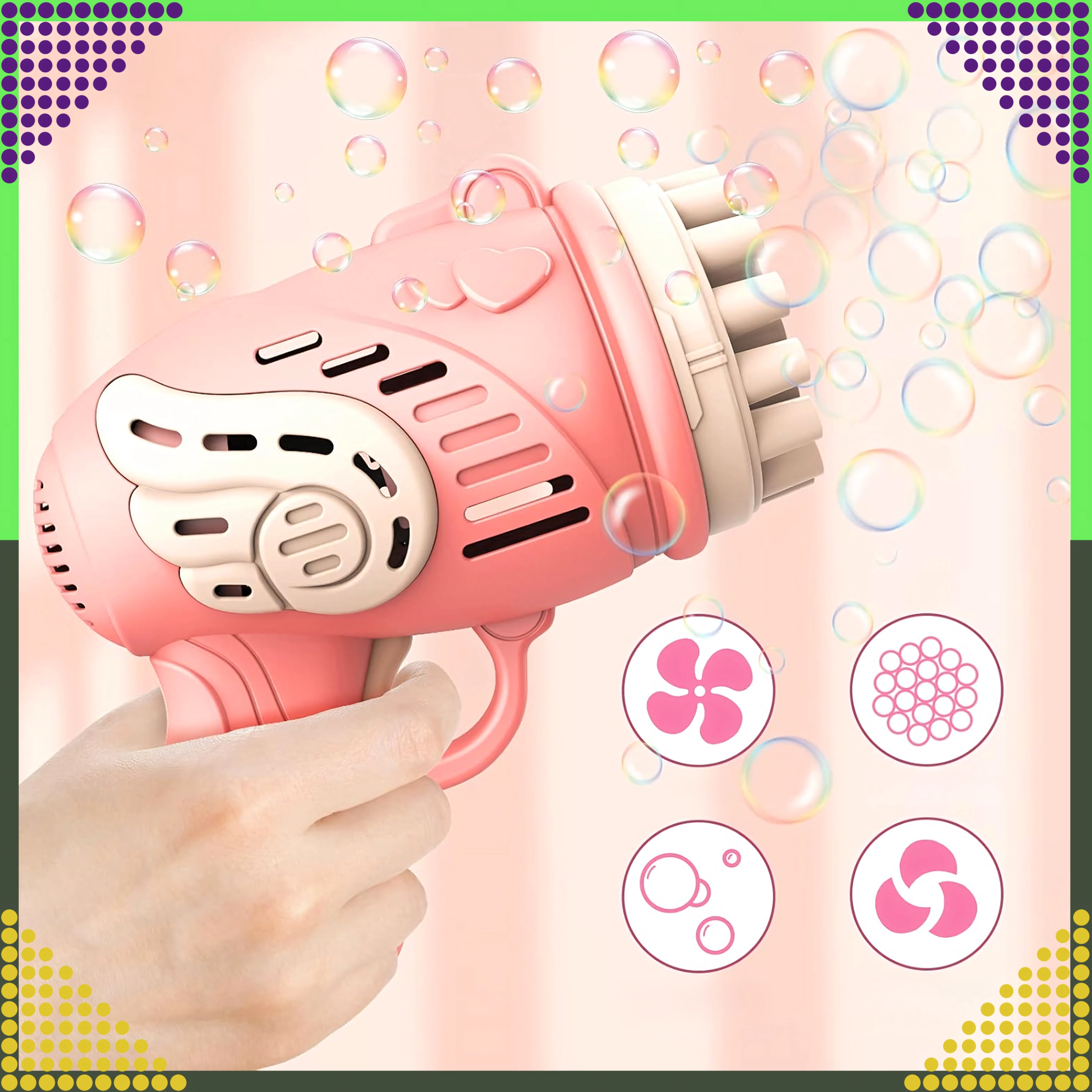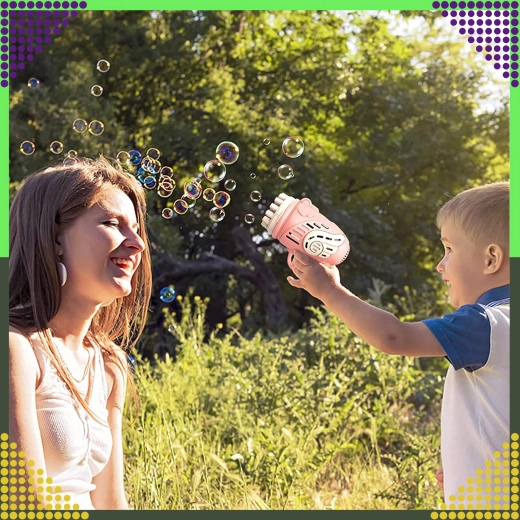 Objevte kouzlo bublin s růžovým pistolkəm, který vytváří desítky až stovky duhových bublin jediným stiskem. Lehká, ergonomická konstrukce a více tryskek zajišťují bohatý proud bublin pro nezapomenutelnou zábavu dětí i dospělých.