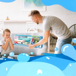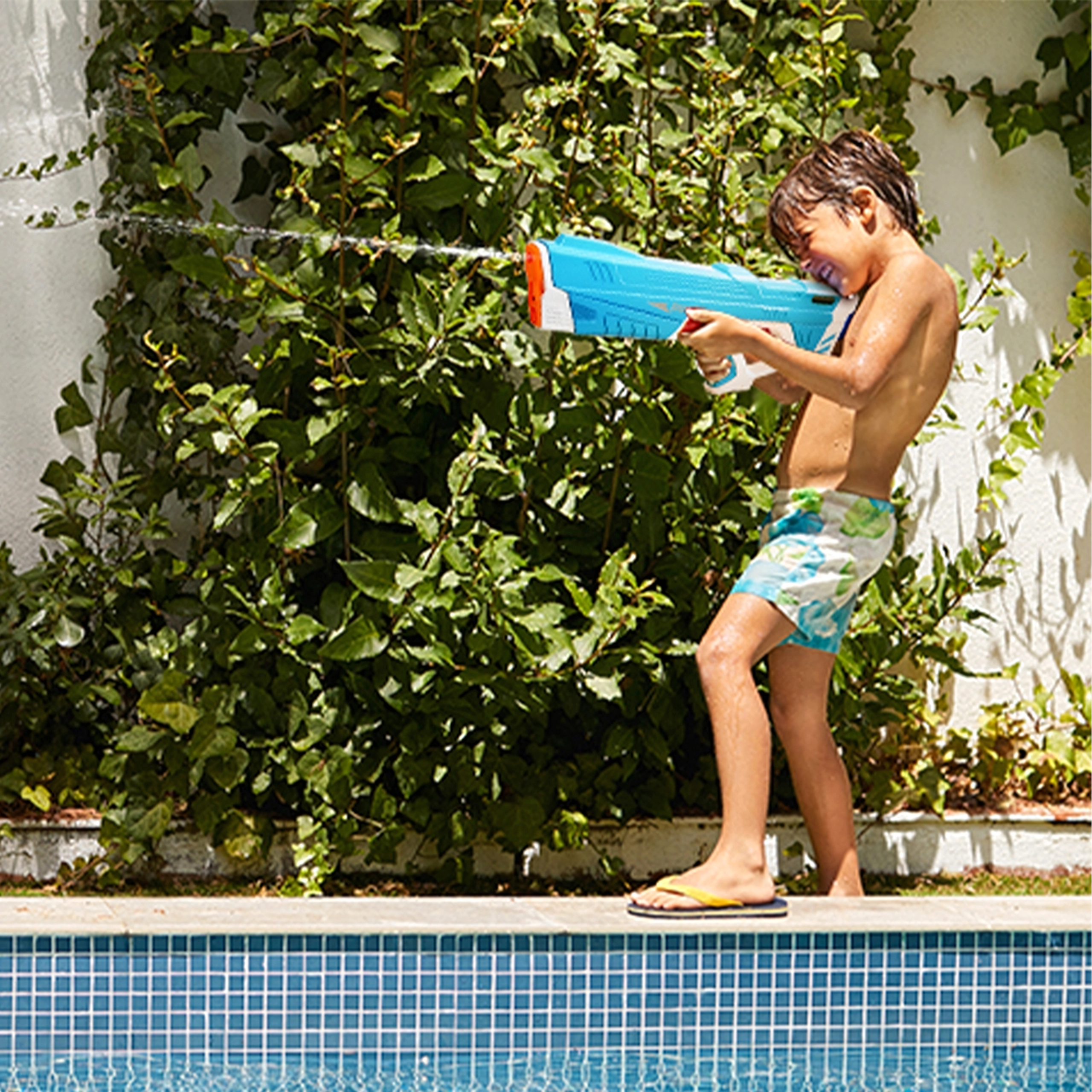 Rychlé automatické plnění a spolehlivý elektrický pohon zjednodušují ovládání, takže se mohou děti soustředit jen na zábavu. Dlouhý dosah střely až 10 m dělá z každé hry napínavou vodní bitvu.
