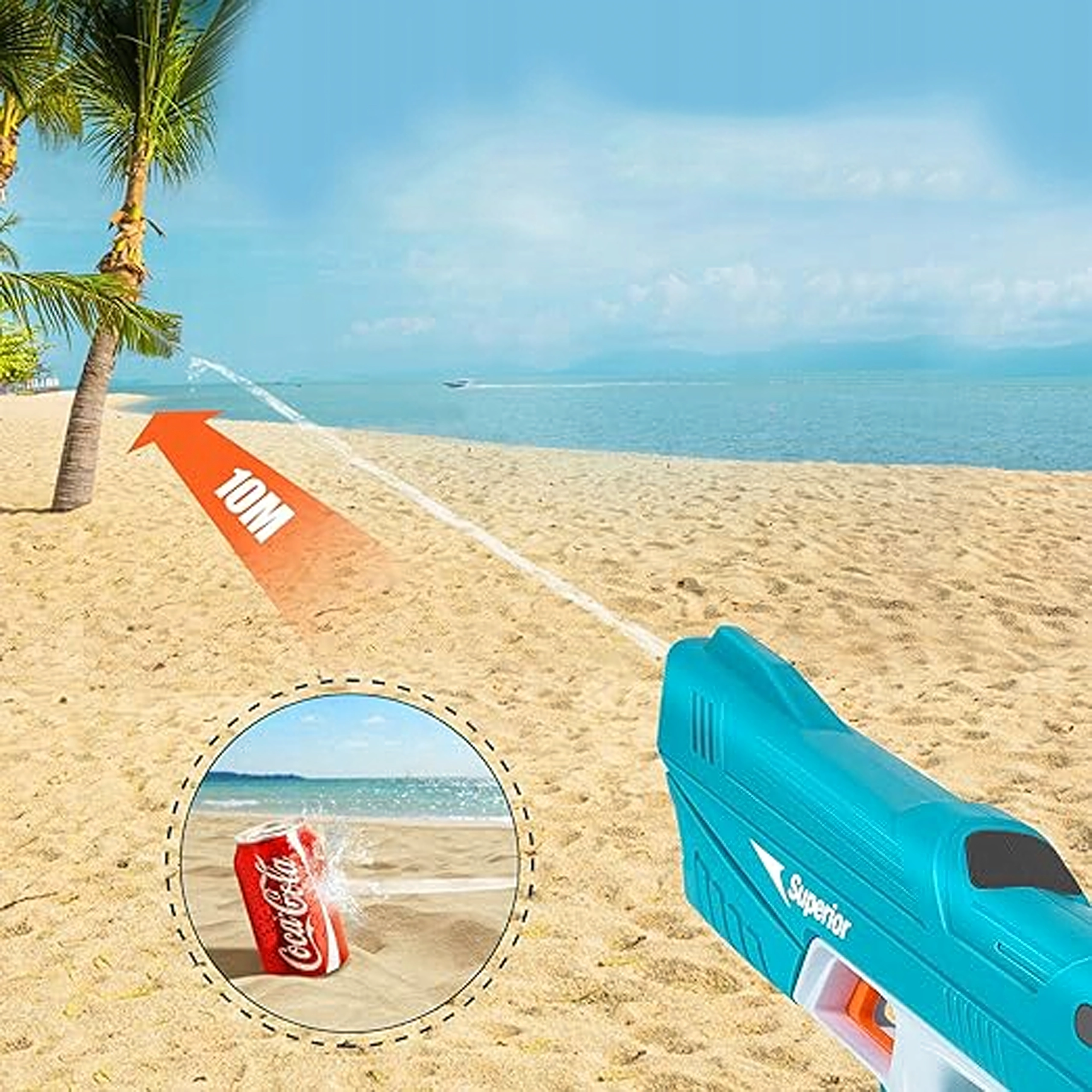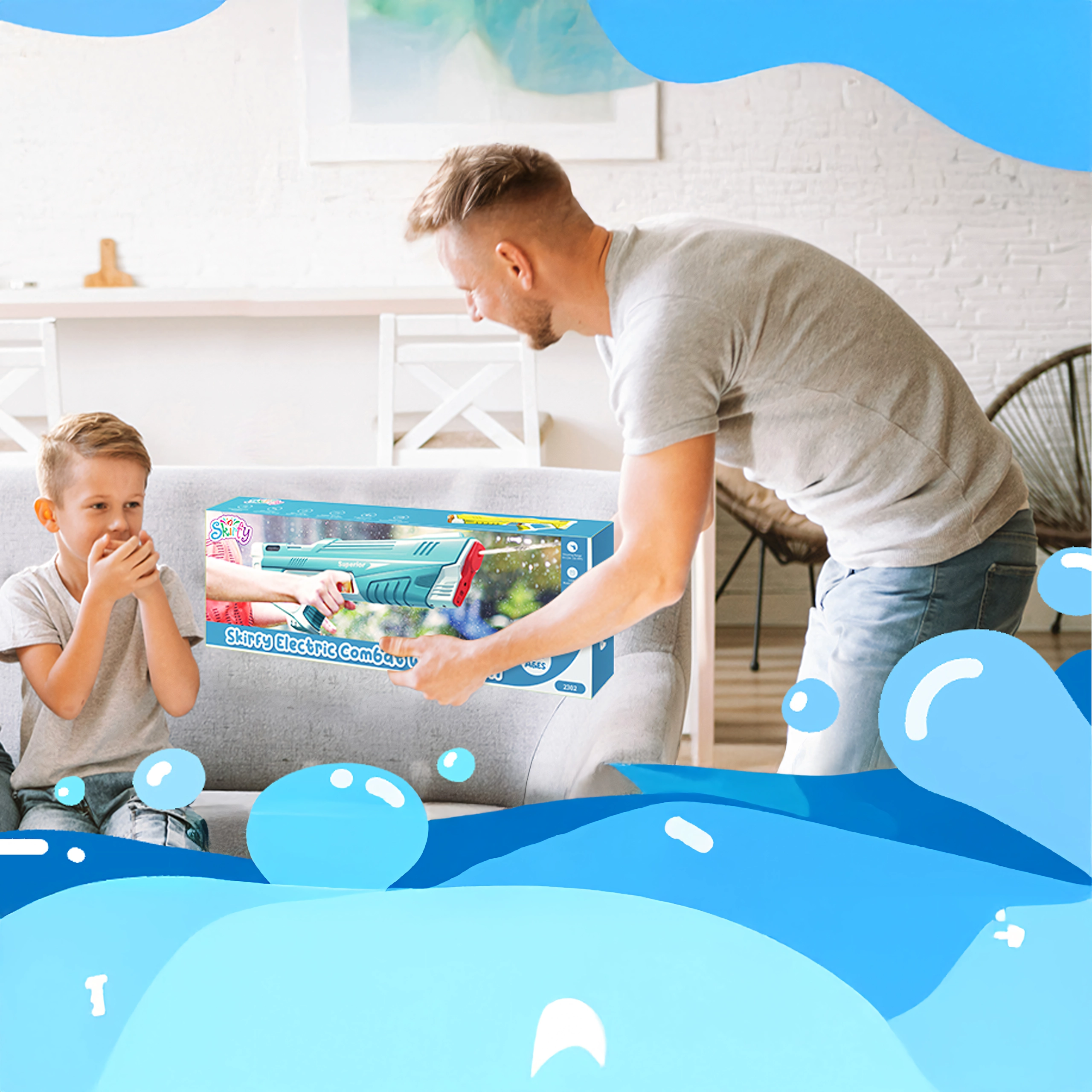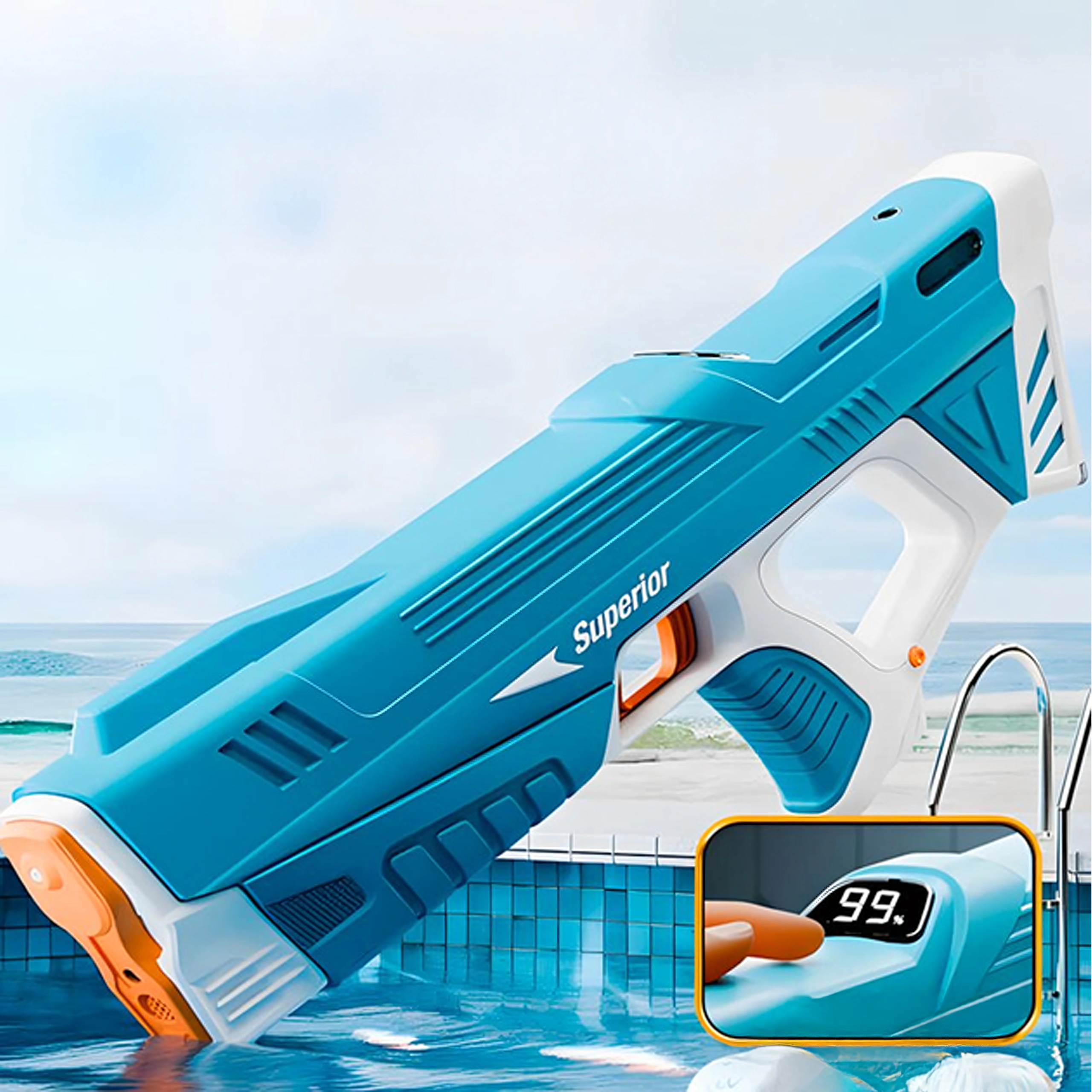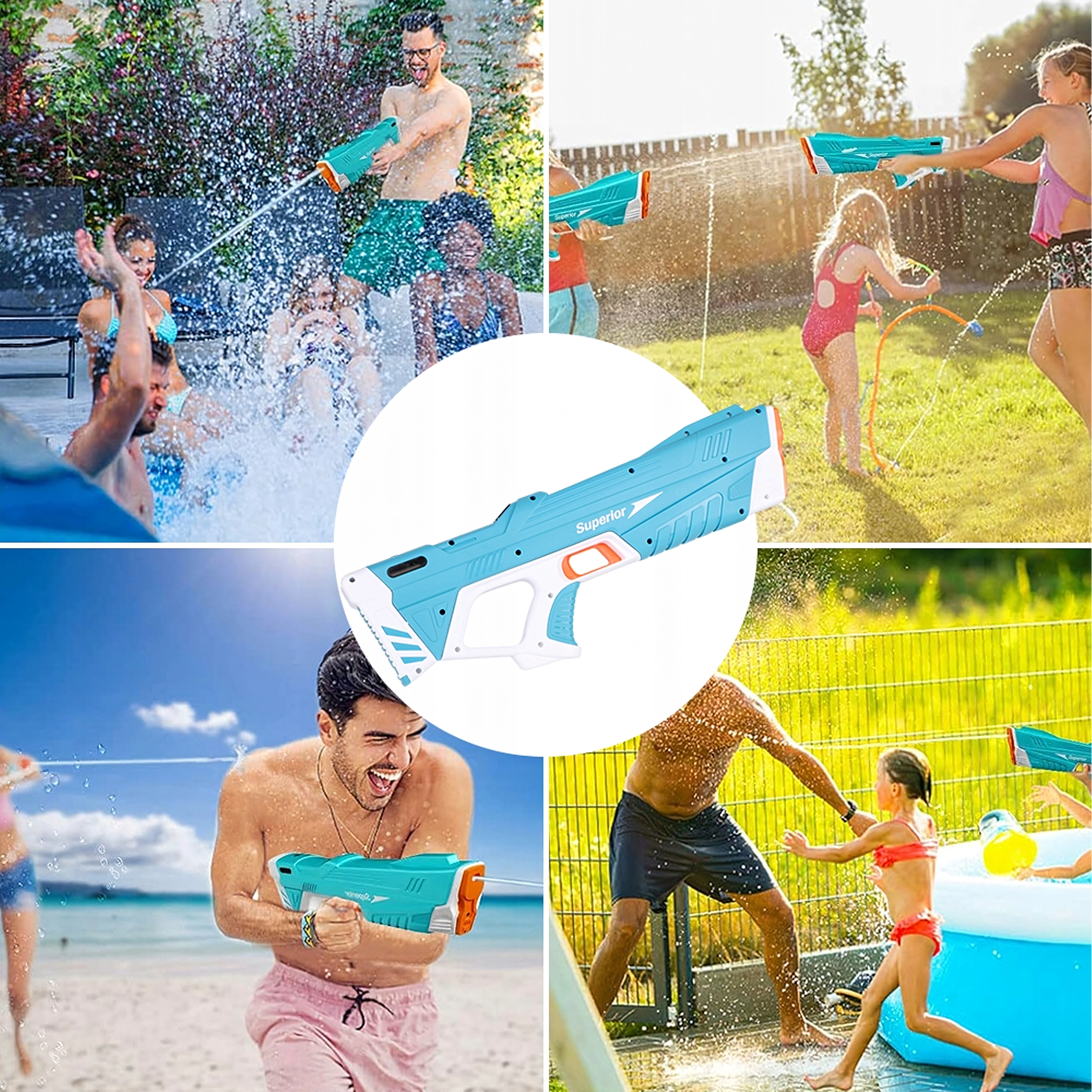 Vestavěný motor zajišťuje rychlé a plynulé stříkání vody – stačí stisknout spoušť a zábava začíná.
