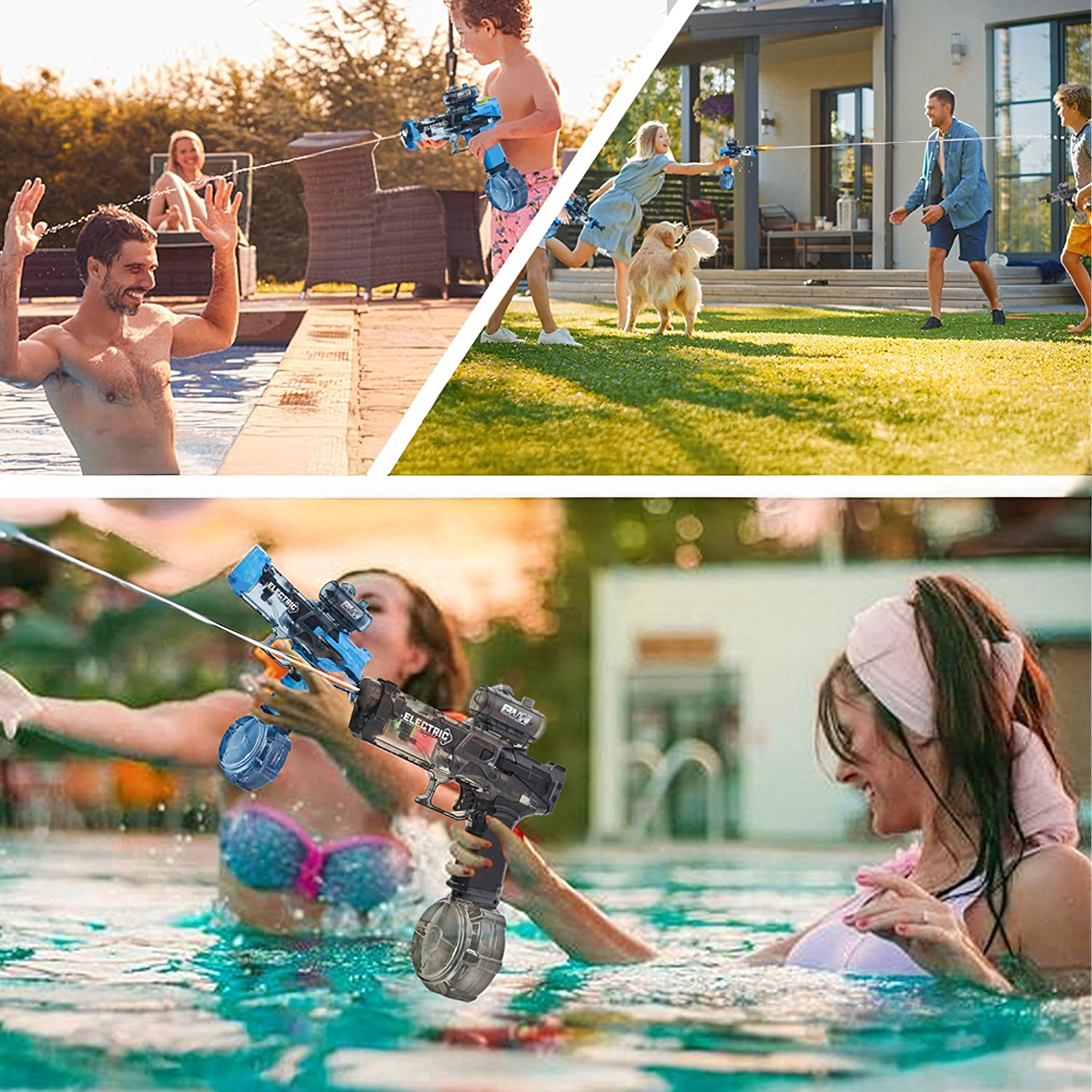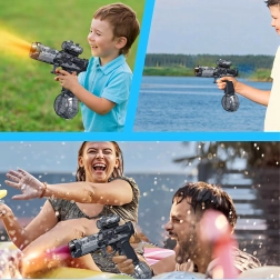 Užijte si letní bitvy naplno s elektrickou vodní pistolí s automatickým systémem střelby, velkým zásobníkem a vestavěným USB akumulátorem. Nabízí nepřetržitou akci až 35 minut a dosah až 10 metrů pro maximální zábavu u bazénu i na zahradě.