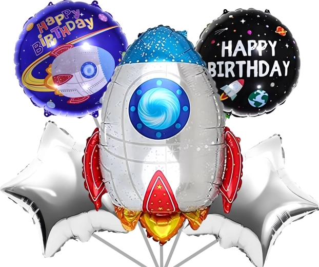 Proměňte oslavu v nezapomenutelnou vesmírnou misi. Fóliové balonky s motivy rakety, astronauta a třpytivých hvězd vytvoří působivou dekoraci, která nadchne malé i velké objevitele. Díky kvalitní fólii si balonky udrží tvar a lesk po delší dobu.