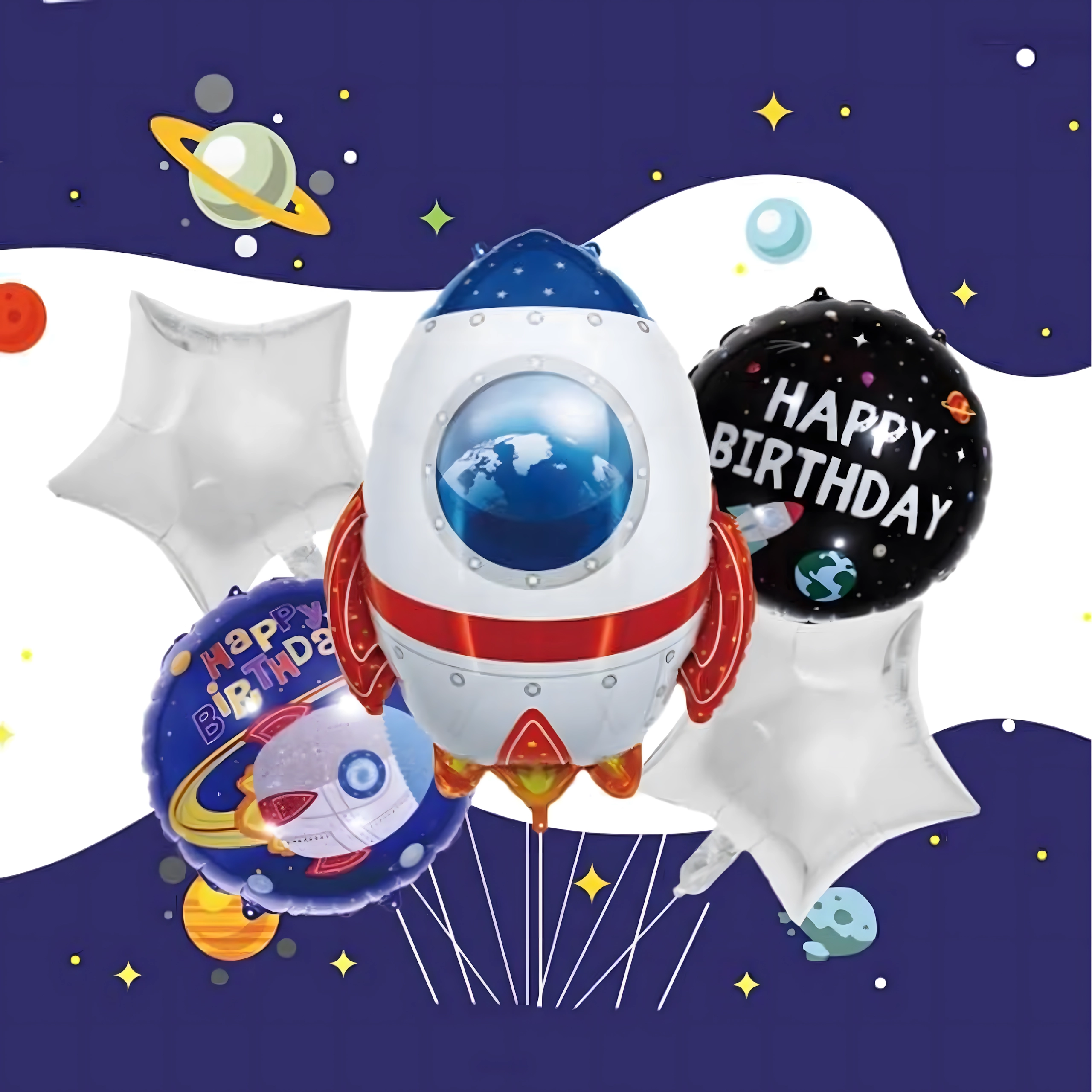 Výzdoba je ideální pro narozeniny, tematické party i dětské pokoje. Sada je připravena k nafouknutí heliem nebo vzduchem a snadno se kombinuje s dalšími doplňky ve vesmírném stylu.