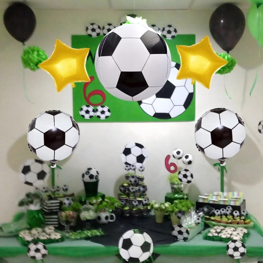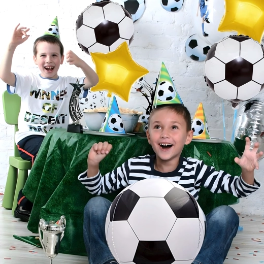 Vytvořte nezapomenutelnou atmosféru na narozeninové oslavě s originální sadou balónků ve fotbalovém stylu. Kombinace realistických balónků ve tvaru míče a elegantních zlatých hvězd dodá vaší výzdobě profesionální vzhled a zvýrazní fotbalové téma.