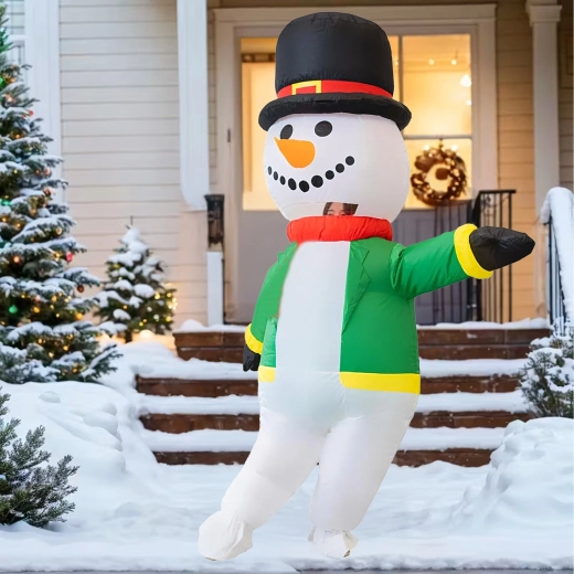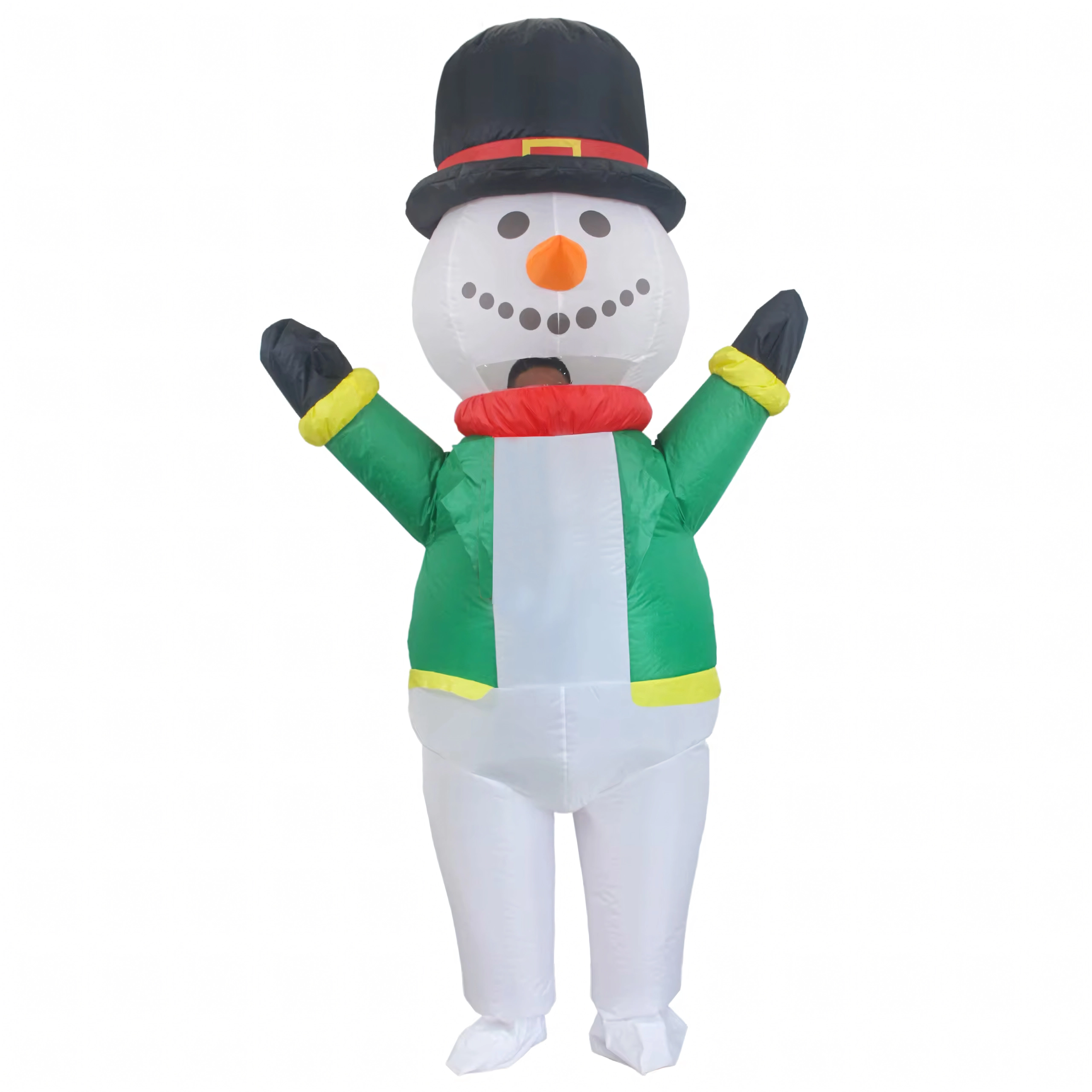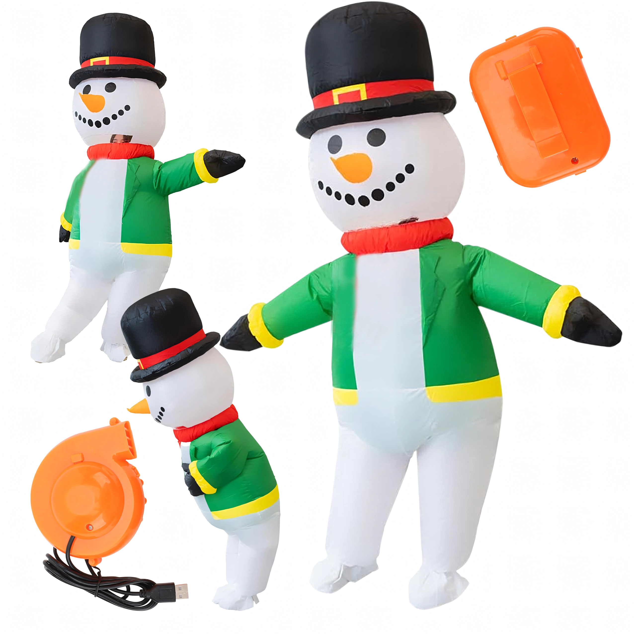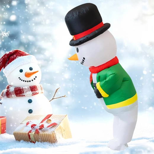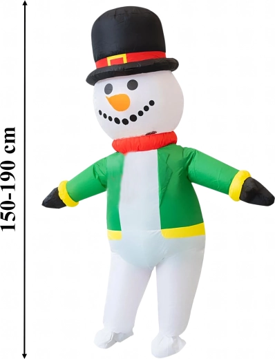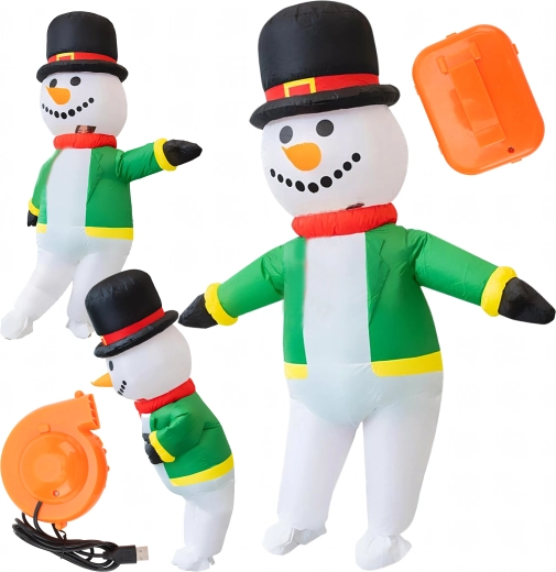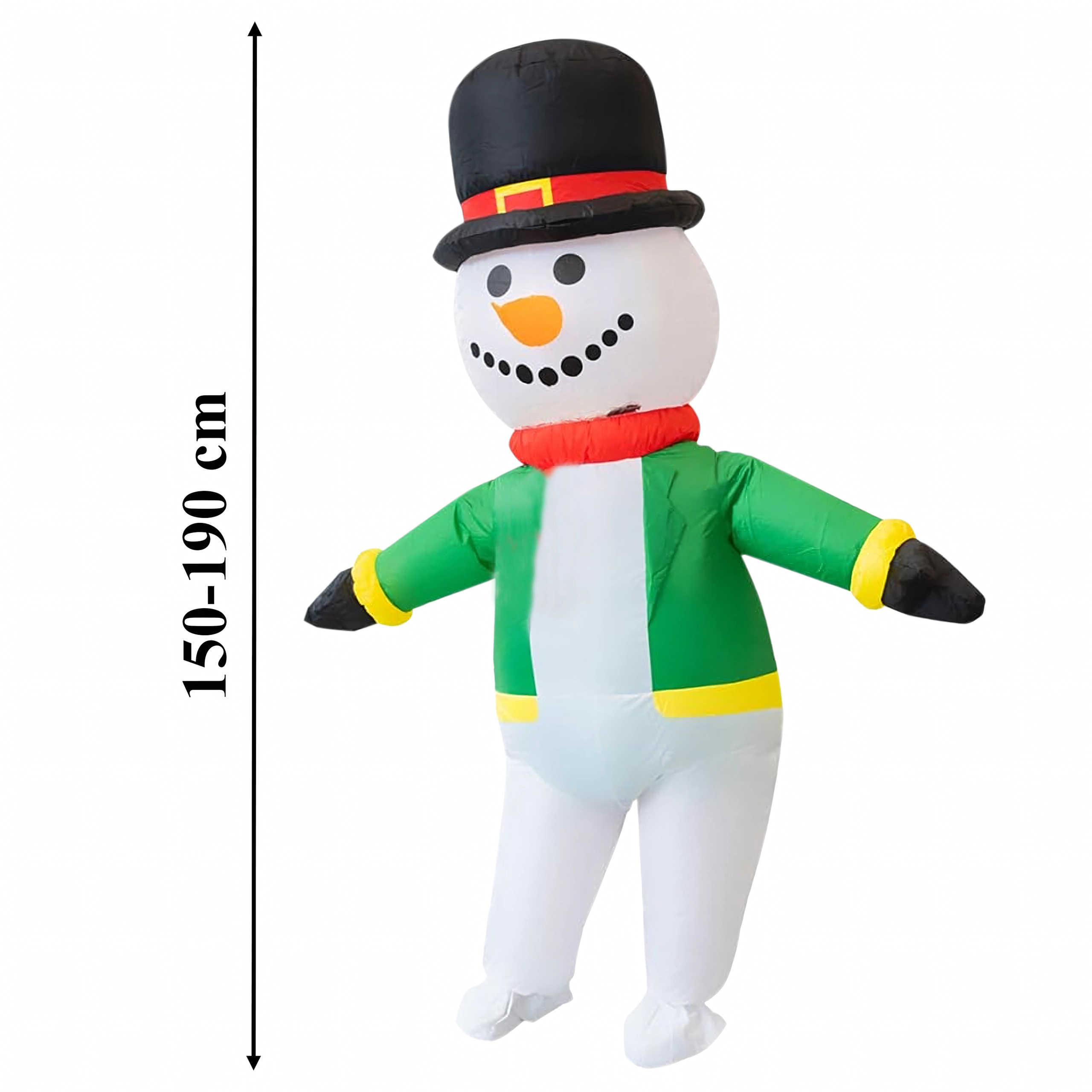 Vstupte do sváteční nálady s tímto nafukovacím kostýmem sněhuláka pro dospělé. Kostým je lehký, pohodlný a odolný, rychle se naplní vzduchem díky přiložené dmuchačce a padne většině postav (cca 150–190 cm). Skvělé pro vánoční večírky, akce a zábavu.