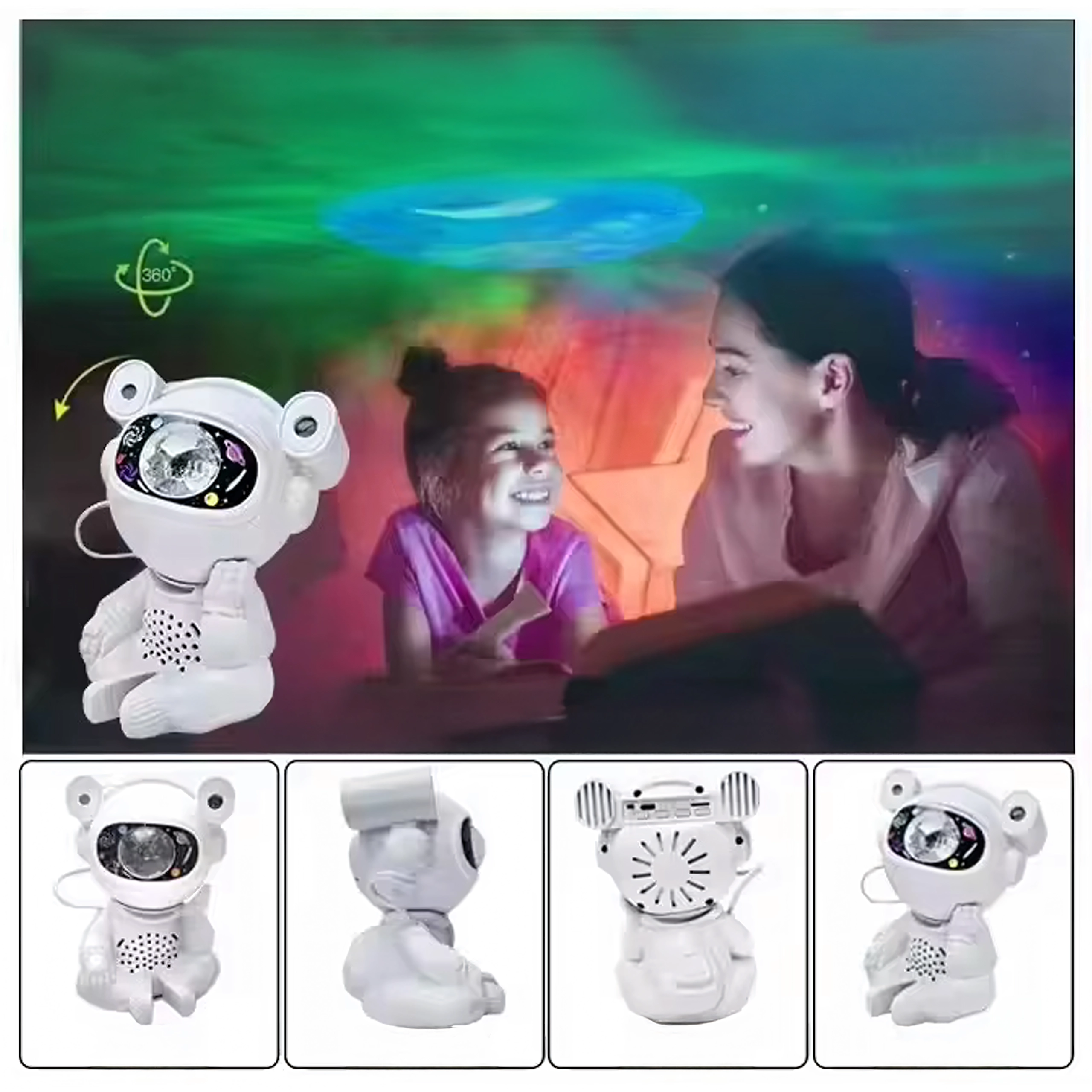 - Pohyblivá hlava astronauta pro nasměrování projekce tam, kam chcete.