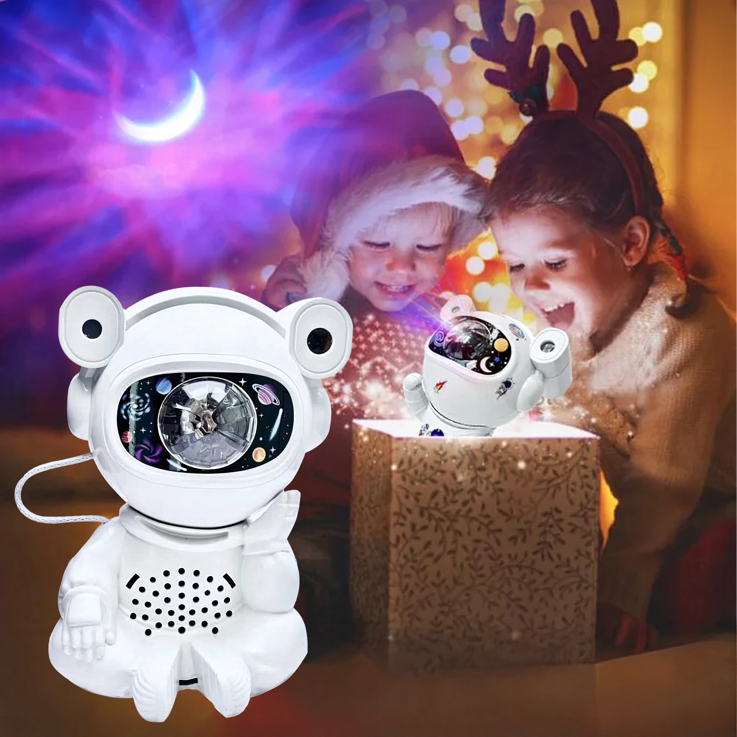 Vytvořte doma kouzelnou atmosféru s jedinečnou noční lampičkou ve tvaru astronauta. Promění dětský pokoj i ložnici v vesmírnou podívanou plnou hvězd a mlhovin. Nabízí 2 vzory v 6 barvách, pohodlné dálkové ovládání a napájení přes USB – ideální pro děti i dospělé snílky.