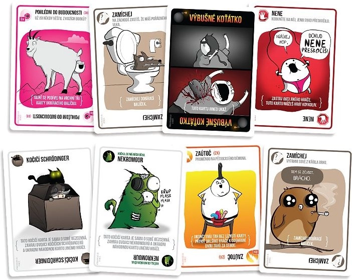 Výbušná koťátka: Přisprostlá edice je dospělá varianta celosvětového hitu, který se stal nejúspěšnější hrou na Kickstarteru. Hráči si dobírají karty a snaží se vyhnout kartě Výbušné koťátko. Kdo ji otočí a nemá Zneškodni, exploduje a ze hry vypadává. Ostatní karty pomáhají přežít – nebo naopak nastražit past soupeřům.