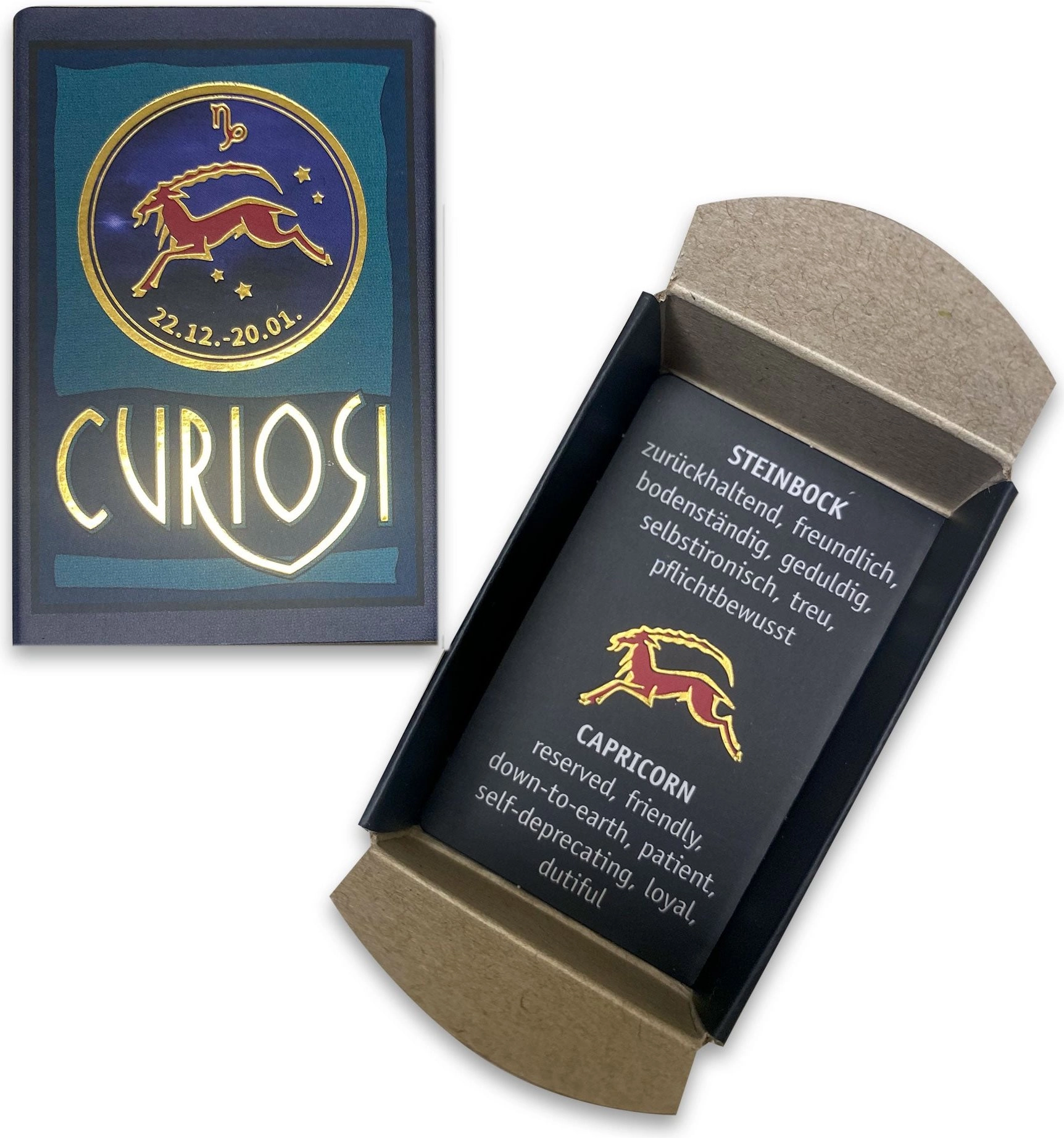 Objevte mini puzzle se znamením Kozoroh od značky Curiosi. Díky netradičně tvarovaným dílkům, elegantnímu zlatému efektu a rychlé době skládání je ideální pro krátký relax. Hotový motiv má přibližně 9 cm v průměru a skvěle poslouží jako stylová dekorace nebo sběratelský kousek.