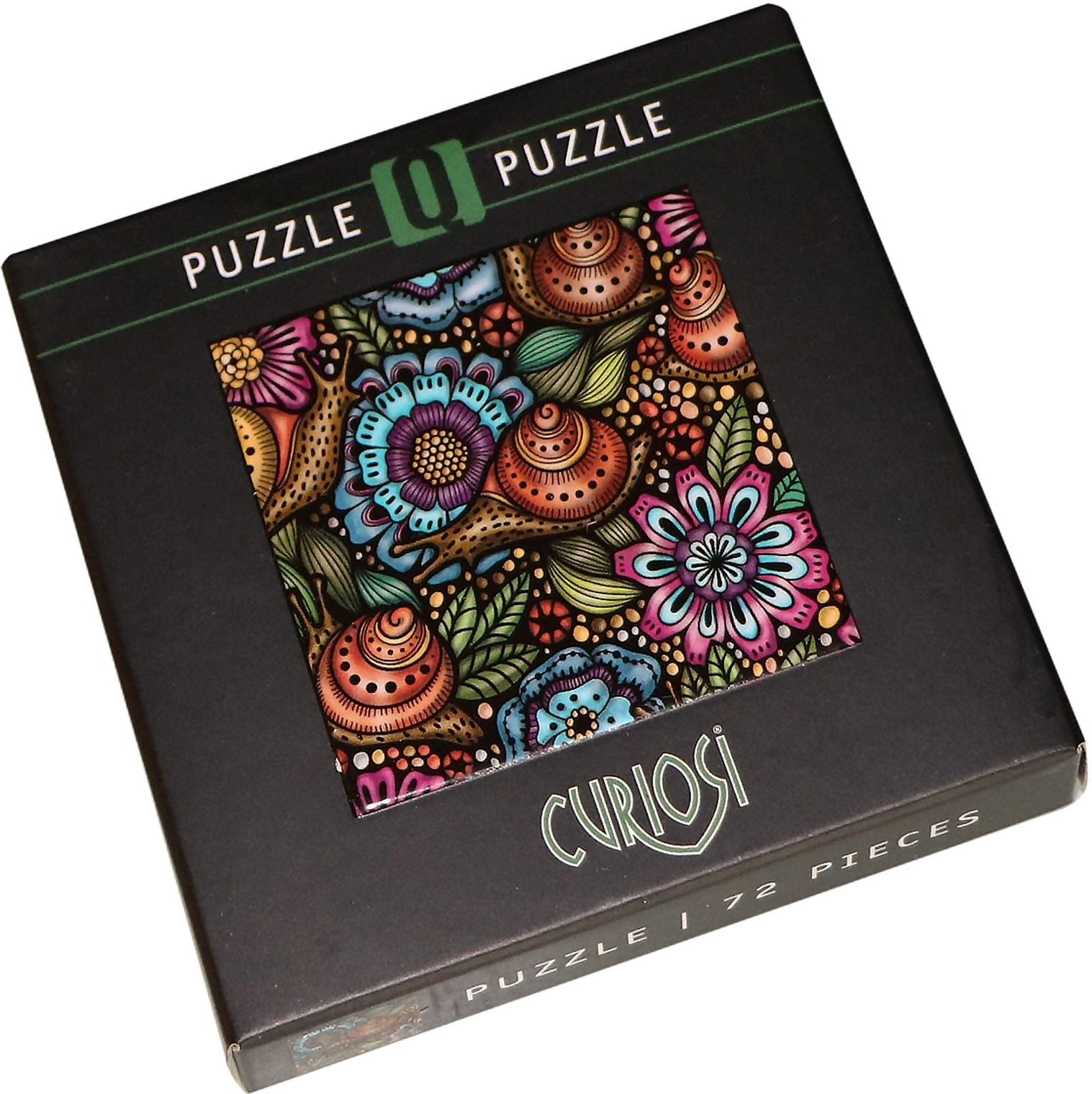 Toto kompaktní čtvercové puzzle s motivem šneků na rozkvetlých květinách potěší každého milovníka skládání. Díky neobvyklým tvarům dílků přináší zábavnější a hravější zážitek, zároveň rozvíjí trpělivost, soustředění a jemnou motoriku.