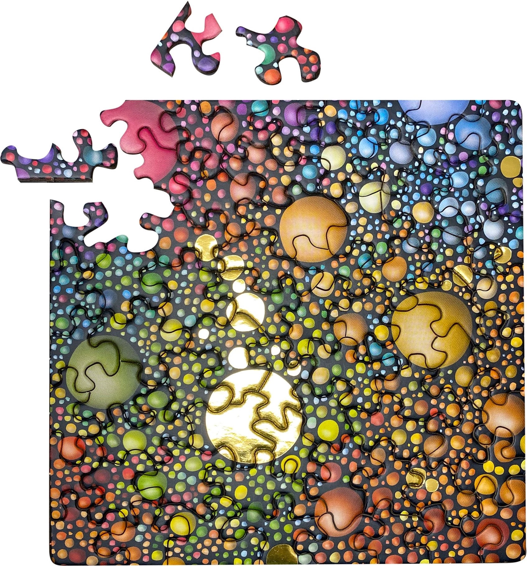 Čtvercové puzzle Curiosi Q Gold vyniká kompaktní velikostí a efektním provedením se zlatým nádechem. Díky neobvyklým tvarům dílků poskytuje příjemnou výzvu a přináší zábavu pro milovníky designových puzzle i sběratele.