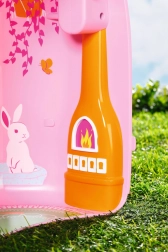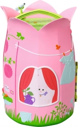 Díky praktické rukojeti lze domeček jednoduše přenášet a poskytuje stín pro vílový domeček.