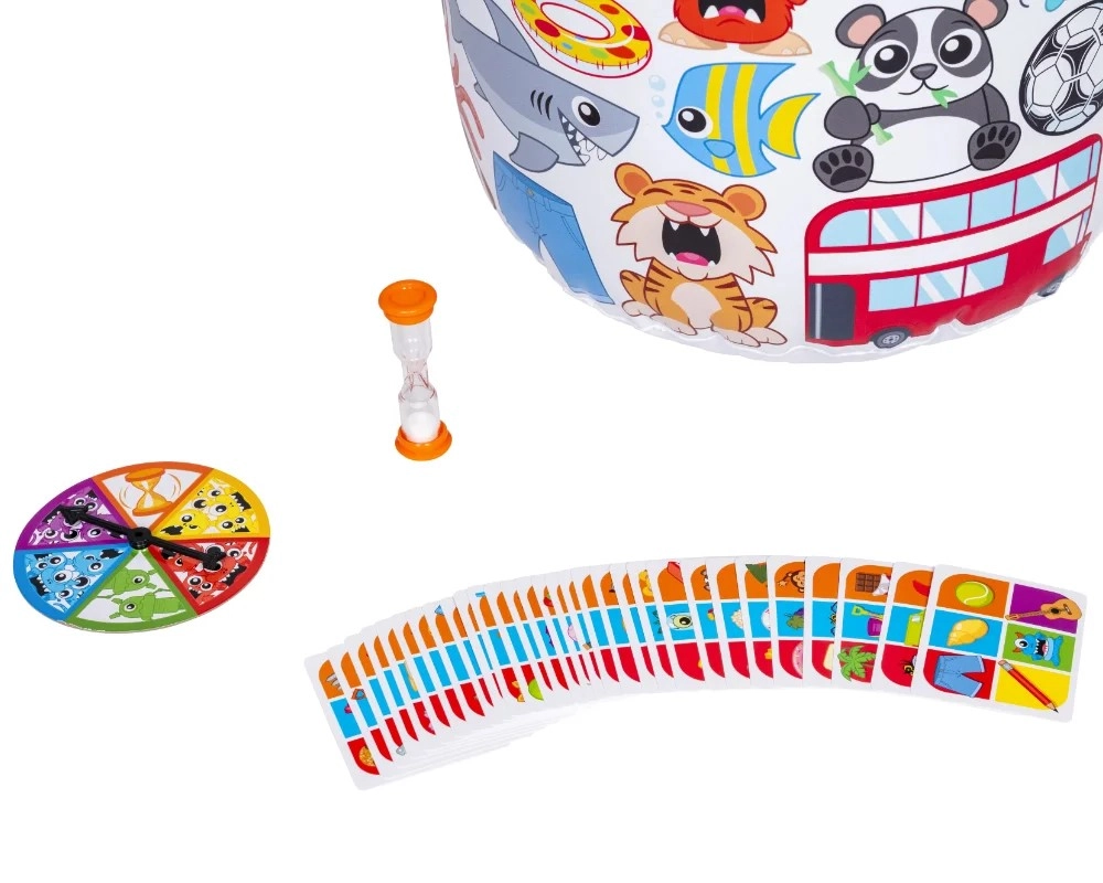 - 1 velký nafukovací kiwak; 30 obrázkových karet (celkem 180 obrázků); losovací kolo; přesýpací hodiny; instrukce