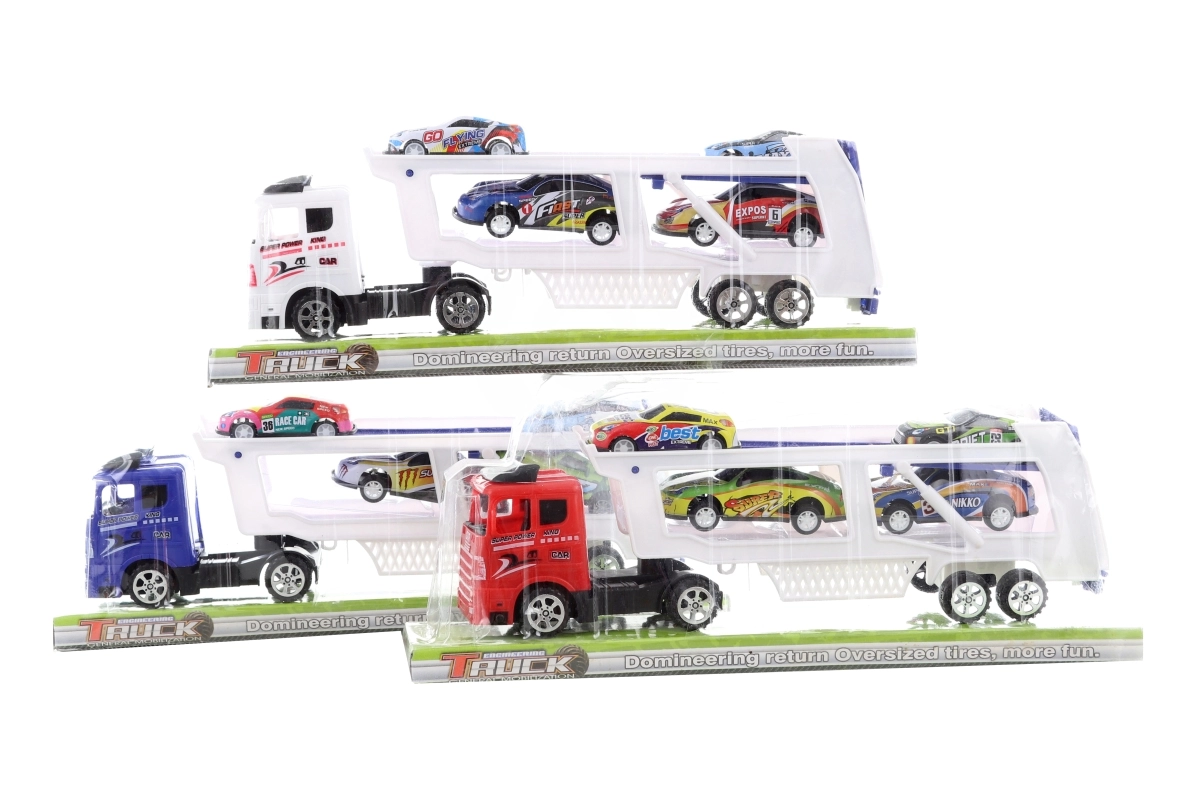 Užijte si spoustu zábavy s přepravním kamionem, který veze čtyři závodní auta na setrvačník. Tento odolný plastový set je ideální pro malé závodníky od 3 let a nabízí hru ve třech barevných variantách. Setrvačník, 4 závodní auta a robustní plastové provedení zaručují nekonečnou porci akce.