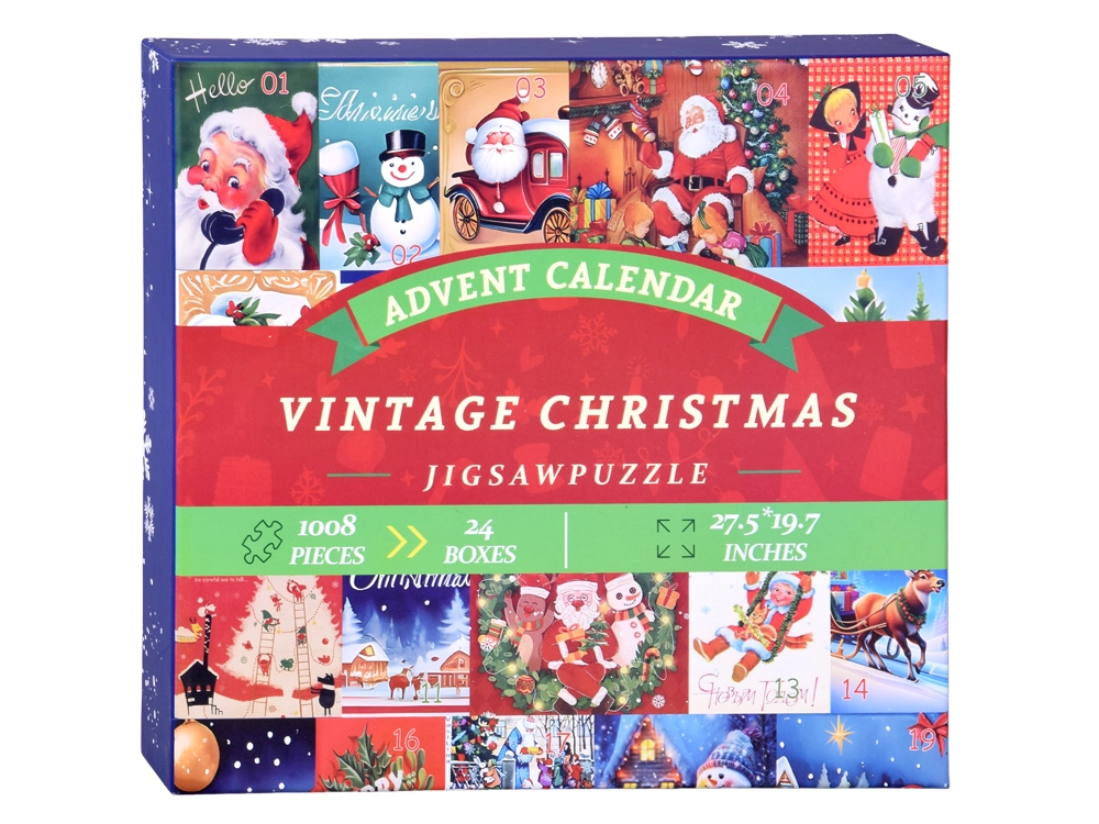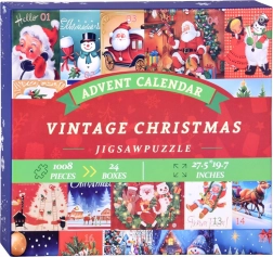 Tento adventní kalendář spojuje radost z odpočítávání do Štědrého dne s uklidňující zábavou skládání puzzlí. Každý den otevřete jedno z 24 okének a získáte malou skládačku s jedinečným vintage motivem. Po poskládání všech ukládaček vznikne jeden společný obraz o rozměrech 70 × 50 cm, který krásně doplní sváteční výzdobu.