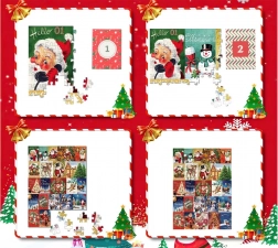 Objevte kouzlo Vánoc s tímto originálním adventním kalendářem, který ukrývá 24 samostatných puzzle s motivy Vánoc, sv. Mikuláše a zimní atmosféry. Každé okénko skrývá 42 dílků, které po poskládání všech dnů vytvoří velký obrázek 70 × 50 cm. Ideální zábava pro děti i dospělé, kvalitní karton, číslované zadní strany pro snadné třídění a styl VINTAGE, který navodí nostalgickou sváteční náladu.