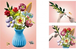 Balení obsahuje dílky rozdělené do sáčků, detailní karty s instrukcemi a stylovou vázu. Sestavíte, naaranžujete a ihned vystavíte.