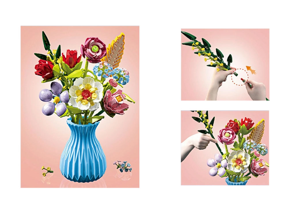 Součástí balení je 8 samostatných návodů – ke každému květu jeden – takže skládání je přehledné a zábavné jak pro dospělé, tak i větší děti. Stavebnice rozvíjí trpělivost, prostorovou představivost a jemnou motoriku, a přitom nabízí dlouhotrvající dekorativní efekt.