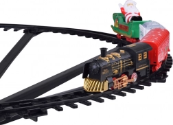- Lokomotiva + 3 vagony (bílý uhlák, červený vůz, zelené saně se Santou)