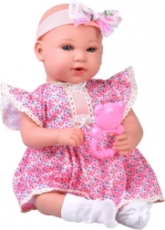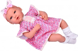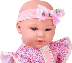 Interaktivní panenka je ideální pro rozvoj fantazie a pečovatelských dovedností. Díky měkkému tělíčku je příjemná na mazlení, zatímco realistické detaily obličeje a kloubové ručičky a nožičky podporují přirozenou hru a jemnou motoriku. Elegantní liliové šaty s krajkou a čelenka s mašlí dodávají panence půvabný vzhled.