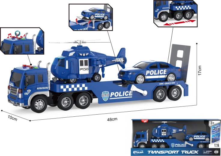 Policejní odtahový vůz 1:16 se světly, zvuky, autem a vrtulníkem