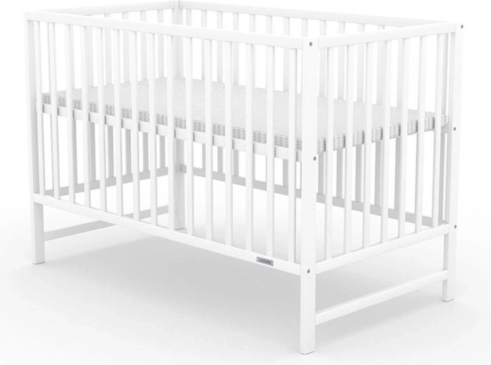 Postýlka NEW BABY BASIC v bílé barvě kombinuje moderní vzhled, promyšlené bezpečnostní prvky a dlouhou životnost. Robustní rám z 100% borovicového dřeva s plochými příčkami a třemi vyjímatelnými lamelami usnadňuje přístup k dítěti i větrání. Rošt nastavitelný ve 3 polohách (22/38/51 cm) roste společně s vaším miminkem.