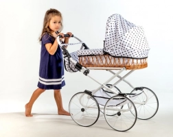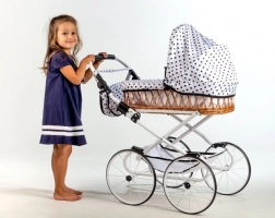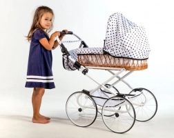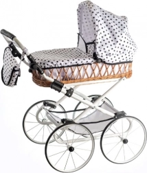 Dopřejte dětem kouzlo klasického stylu s retro kočárkem Monika. Proutěná korbička v kombinaci s bílou konstrukcí a hravým puntíkovým vzorem působí elegantně a nadčasově. Kočárek je lehký, stabilní a promyšlený pro pohodlné každodenní hraní.