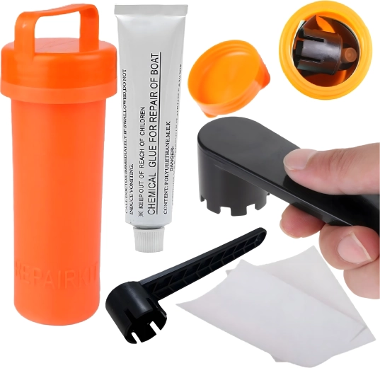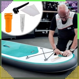 Tato kompaktní opravná sada je navržena pro rychlou a kvalitní opravu nafukovacích paddleboardů, kajaků, raftů i dalších vodních plavidel. Vodotěsné oranžové pouzdro udrží obsah v suchu a bezpečí, takže jej můžete mít stále po ruce v batohu či v lodi. Součástí je chemické lepidlo s aplikátorem, záplatové pláty a klíč k ventilu pro utažení nebo údržbu ventilů.