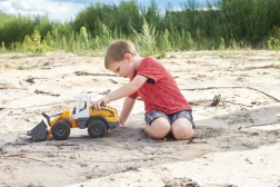 Skvělý parťák pro malé stavitele – zvládne písek, kamínky i koberce a podporuje jemnou motoriku a fantazii.